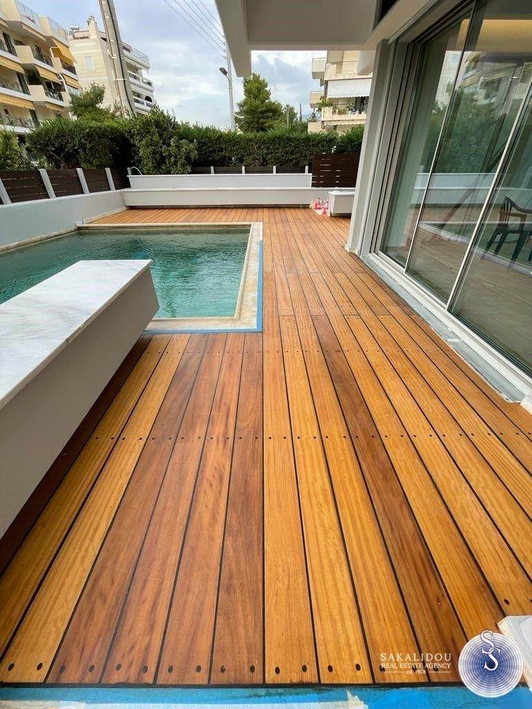 Γλυφάδα Κάτω, περιοχή Γκόλφ, ανακαινισμένη Μεζονέτα 255τ.μ Κύριων χώρων με κήπο και πισίνα, ΧΩΡΙΣ ΕΠΙΒΑΡΥΝΣΗ ΦΠΑ. Πρόκειται για εξαιρετικής κατασκευής μεζονέτα που μόλις ανακαινίστηκε με τα πλέον σύγχρονα υλικά τόσο στον εσωτερικο όσο και στον περιβάλλοντα χώρο. Είναι κατασκευασμένη σε τρία επίπεδα, το υπερυψωμένο ισόγειο, τον α’ όροφο και το ημιυπόγειο που διαθέτει πόρτες και παράθυρα και προσφέρουν φυσικό φωτισμό και αερισμό. Διαθέτει 4 συνολικά master υπνοδωμάτια εκ των οποίων ΔΥΟ στον όροφο και ΔΥΟ στο Ημιυπόγειο τα οποία διαθέτουν ανεξάρτητες εξωτερικές εισόδους με πόρτες ασφαλείας και έχουν άμεση πρόσβαση στον περιβάλλοντα χώρο και την πισίνα. Το συνολικό εμβαδόν κατοικίας είναι 255 τ.μ και πρόκειται για χώρους Κύριας Χρήσης πλήρως τακτοποιημένους πολεοδομικά. Επί προσθέτως η κατοικία διαθέτει και 16τ.μ βοηθητικών χώρων. Έχει ανεξάρτητη είσοδο με δικό του υπαίθριο περιβάλλοντα χώρο αποκλειστικής χρήσης συνολικού εμβαδού 206.54τ.μ.