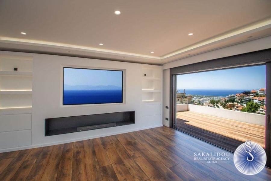 Πολυτελής μονοκατοικία, συνολικής επιφάνειας 550 τ.μ., βρίσκεται σε μια προνομιακή τοποθεσία στο Πανόραμα Βούλας, προσφέροντας απρόσκοπτη θέα στη θάλασσα και εύκολη πρόσβαση. Χτισμένη σε οικόπεδο 356 τ.μ., η κατοικία αναπτύσσεται σε 5 επίπεδα, όλα συνδεδεμένα με εσωτερικό ανελκυστήρα, παρέχοντας άνεση και λειτουργικότητα. Το σπίτι διαθέτει δύο ευρύχωρα σαλόνια και 2 κουζίνες, η μια μεγάλη open-plan πλήρως εξοπλισμένη με σύγχρονες συσκευές. Περιλαμβάνει 6 υπνοδωμάτια, το καθένα με ιδιωτικό μπάνιο, ενώ υπάρχει και ένα επιπλέον WC. Το master υπνοδωμάτιο, το οποίο καταλαμβάνει το ανώτερο επίπεδο, προσφέρει πολυτέλεια με ιδιωτική γκαρνταρόμπα και τη δυνατότητα διαμόρφωσης γραφείου. Οι εξωτερικοί χώροι του σπιτιού είναι άρτια διαμορφωμένοι, διαθέτοντας πολλές βεράντες και μπαλκόνια, με μια εντυπωσιακή πισίνα 26 τ.μ. στο ισόγειο, με που επιτρέπει στους κατοίκους να απολαμβάνουν τη μαγευτική θέα στη θάλασσα. Το υπόγειο της κατοικίας καλύπτει 200 τ.μ. και προσφέρει άνετους χώρους στάθμευσης για 4 αυτοκίνητα, αποθήκη και τον μηχανολογικό εξοπλισμό. Η κατοικία είναι εξοπλισμένη με σύγχρονα τεχνολογικά πρότυπα, διαθέτοντας αυτονομία θέρμανσης ανά επίπεδο, κλιματισμό, σύστημα συναγερμού και προηγμένα συστήματα διαχείρισης.