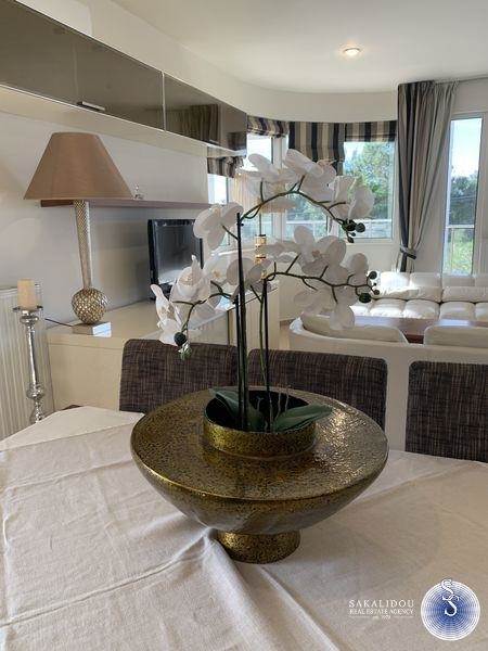 Γλυφάδα, Γκολφ, πολυτελές οροφοδιαμέρισμα 2ου ορόφου, 145 τμ., με μοναδική και ανεμπόδιστη θέα στο πάρκο του Γκόλφ, ανακαινισμένο - ανακαίνιση 2025 ( κουζίνα και είδη υγεινής ), επιπλωμένο και εξοπλισμένο, με τεράστια βεράντα, στην ομορφότερη γειτονιά της Γλυφάδας, μόλις 15` με τα πόδια απο την πλατεία. Διαθέτει σαλόνι με τζάκι, 3 υπνοδωμάτια, 2 μπάνια, μοντέρνο στυλ, εξοπλισμένη κουζίνα με εντοιχισμένες ηλεκτρικές συσκευές, αυτόνομη θέρμανση - πετρέλαιο, ηλιακό θερμοσίφωνα, κλιματισμό σε όλους τους χώρους, 1 θέση υπόγειο parking και αποθήκη. Βρίσκεται σε πολύ ωραία και ήσυχη περιοχή, σε κοντινή απόσταση απο αγορά, μέσα μαζικής μεταφοράς. Η τιμή στην αγγελία αφορά ετήσια σύμβαση. Διατίθεται και για βραχυπρόθεσμη μίσθωση/σεζόν με άλλη τιμή ενοικίου.