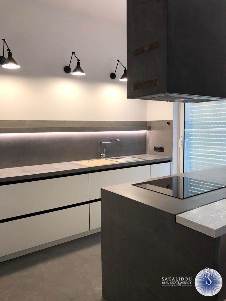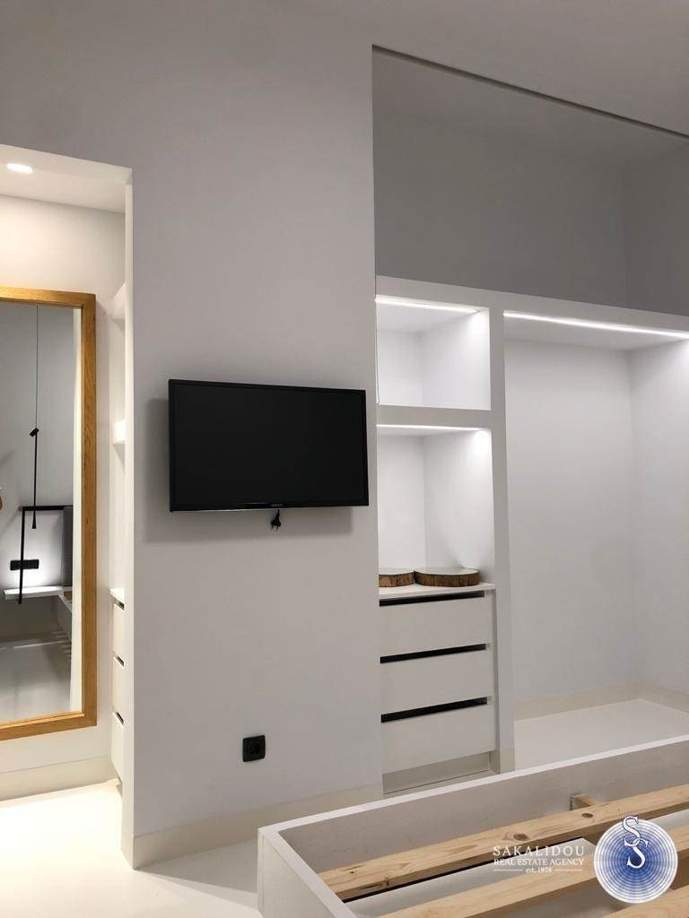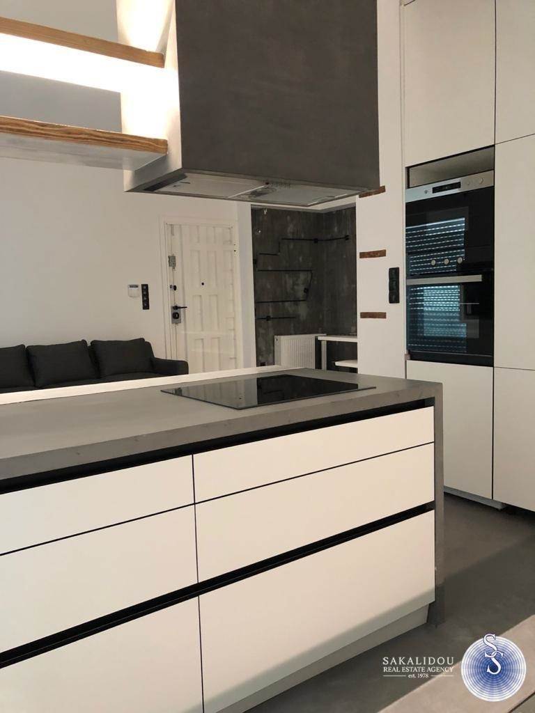 Αποτελείται από δύο κρεβατοκάμαρες η μία μάστερ, 2ο μπάνιο, σαλόνι-τραπεζαρία και κουζίνα. Είναι πλήρως επιπλωμένο και εξοπλισμένο, διαθέτει μία θέση πάρκινγκ, πατάρια αποθήκευσης, μπαλκόνια περιμετρικά, παράθυρα αλουμινίου με διπλά τζάμια, σίτες σε όλα τα παράθυρα, πόρτα ασφαλείας, συναγερμό σε παντζούρια και παράθυρα ξεχωριστά, εταιρία παρακολούθησης συναγερμού, θυροτηλεόραση, αιρκοντίσιον και αυτόνομη θέρμανση με πετρέλαιο.