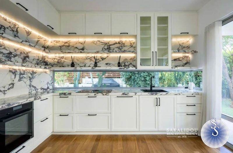 ΓΛΥΦΑΔΑ ΚΑΤΩ, Καταπληκτική Μοντέρνα Μεζονέτα 220 τ.μ., με πισίνα, κήπο, πλήρως και πρόσφατα ανακαινισμένη , ισογείου - 1ου ορόφου, διαθέτει δρύινα δάπεδα, άνετο και πολύ φωτεινό χώρο υποδοχής με τζάκι, 3 υπνοδωμάτια (το 1 μάστερ), εντοιχισμένες ηλεκτρικές συσκευές, αυτονομία θέρμανσης φυσικό αέριο, συναγερμός, θυροτηλέφωνο (Camera), πόρτες ασφαλείας, διπλά τζάμια, ηλεκτρικά ρολά, εσωτερική σκάλα, ακίνητο εξαιρετικής αρχιτεκτονικής, διαμπερές και πολύ φωτεινό, πρόσφατα και πολυτελώς ανακαινισμένο με φινιρίσματα υψηλής ποιότητας, κρυφούς φωτισμούς, 2 θέσεις parking, αποθήκη, bbq, όμορφος κήπος, σε εξαιρετική τοποθεσία, ωραίο περιβάλλον, κοντά σε γειτονική αγορά και τις συγκοινωνίες με τα πόδια.