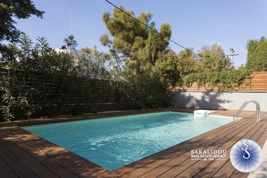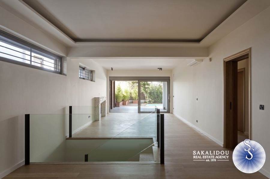 ΓΛΥΦΑΔΑ ΚΑΤΩ, μεζονέτα ισογείου 227 τ.μ., (ισόγειο 127τμ και υπόγειο 100τμ) minimal αρχιτεκτονικού σχεδιασμού, με δικό της κήπο 155 τ.μ., πισίνα 25 τ.μ., σε απόσταση αναπνοής από το κέντρο, κατασκευή 2008, ανακαίνιση το 2024. Αποτελείται από Ενιαίο σαλόνι-τραπεζαρία με τζάκι, μοντέρνα κουζίνα, 4 υπνοδωμάτια, master, 2 μπάνια, . Διαθέτει δρύινα πατώματα, επώνυμα είδη υγιεινής, ατομική θέρμανση φυσικού αερίου (ενδοδαπέδια) με αυτονομία μεταξύ των ορόφων, κλιματισμό, διπλά τζάμια και κουφώματα αλουμινίου, δύο εσωτερικές αποθήκες και 1 υπόγεια θέση στάθμευσης.