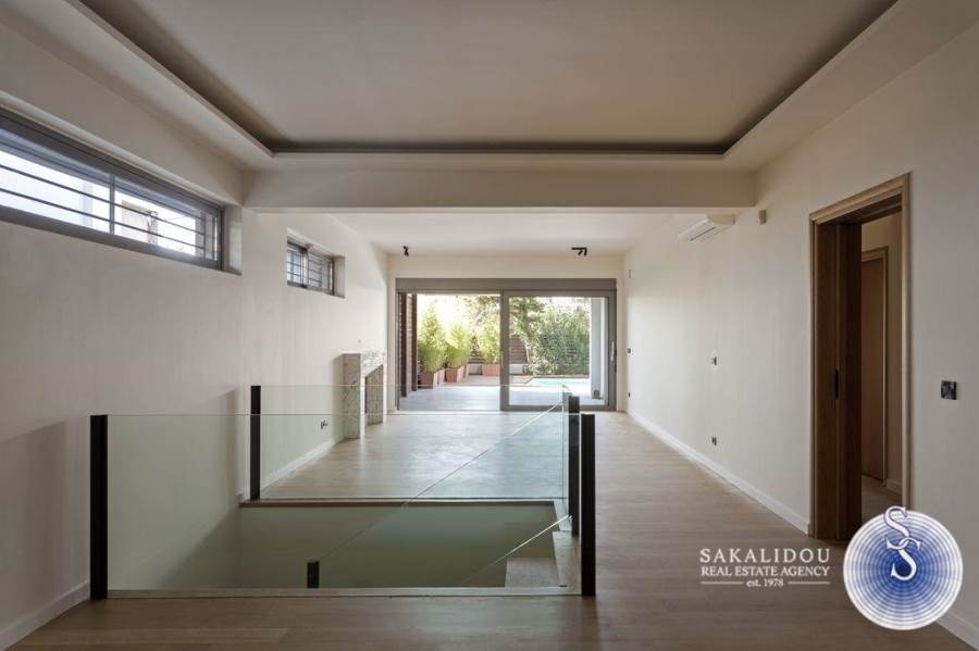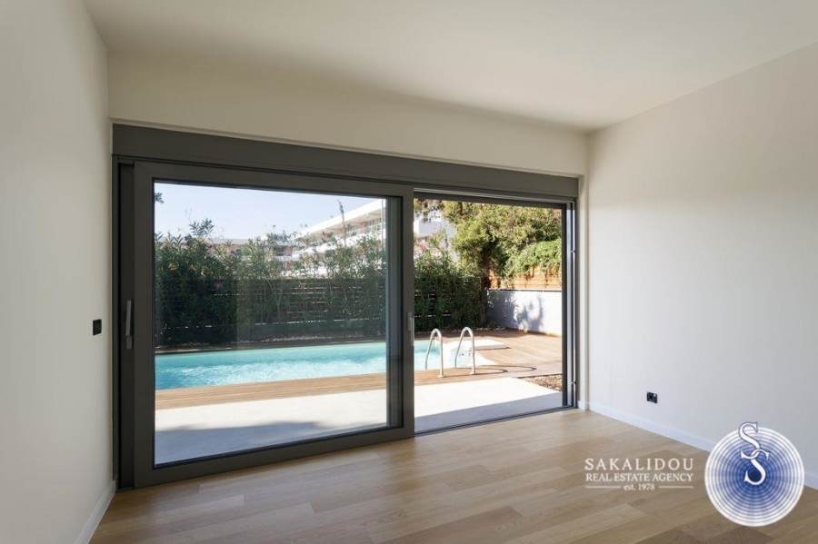 ΓΛΥΦΑΔΑ ΚΑΤΩ, μεζονέτα ισογείου 227 τ.μ., (ισόγειο 127τμ και υπόγειο 100τμ) minimal αρχιτεκτονικού σχεδιασμού, με δικό της κήπο 155 τ.μ., πισίνα 25 τ.μ., σε απόσταση αναπνοής από το κέντρο, κατασκευή 2008, ανακαίνιση το 2024. Αποτελείται από Ενιαίο σαλόνι-τραπεζαρία με τζάκι, μοντέρνα κουζίνα, 4 υπνοδωμάτια, master, 2 μπάνια, . Διαθέτει δρύινα πατώματα, επώνυμα είδη υγιεινής, ατομική θέρμανση φυσικού αερίου (ενδοδαπέδια) με αυτονομία μεταξύ των ορόφων, κλιματισμό, διπλά τζάμια και κουφώματα αλουμινίου, δύο εσωτερικές αποθήκες και 1 υπόγεια θέση στάθμευσης.