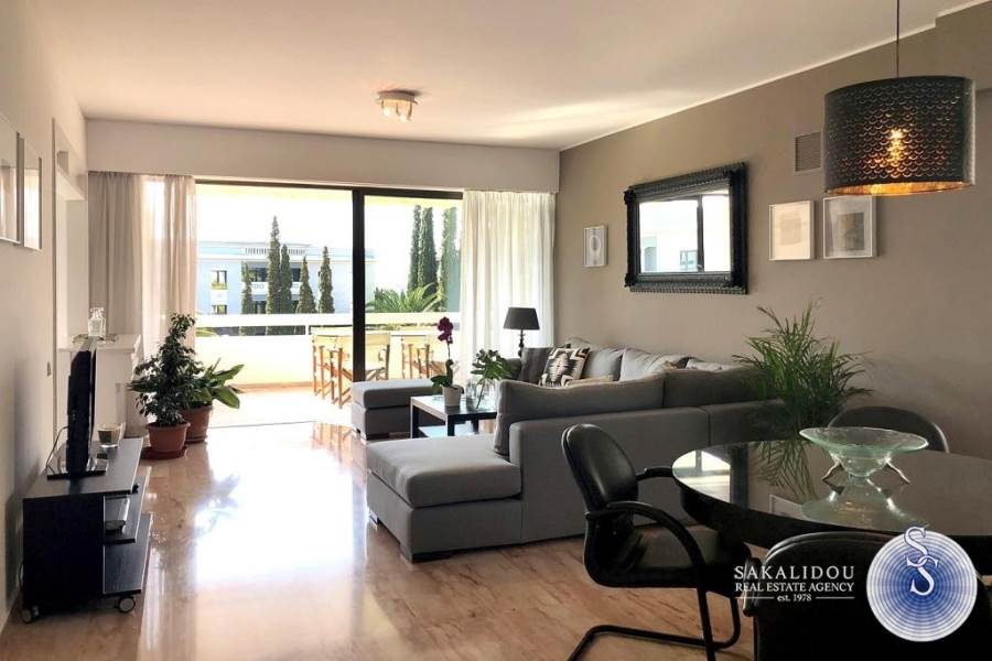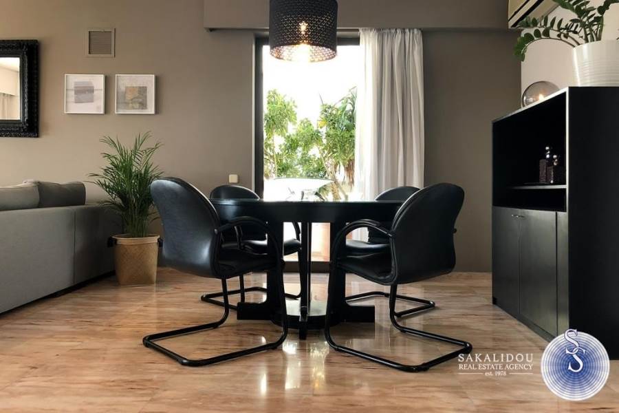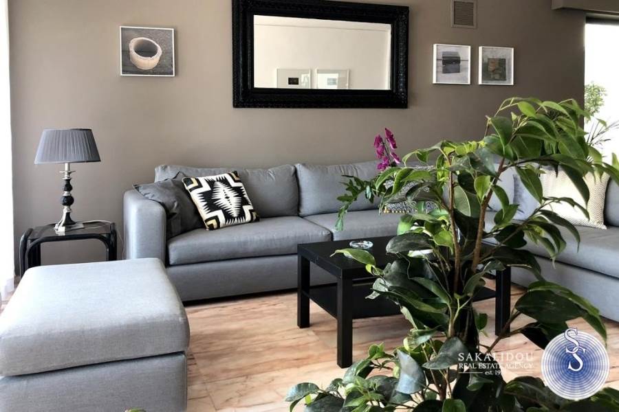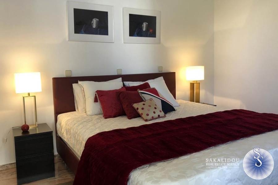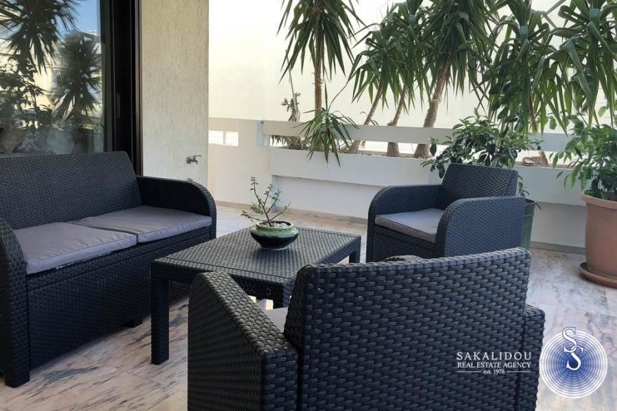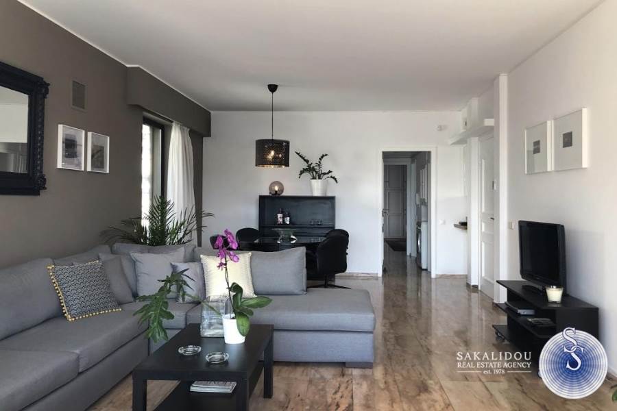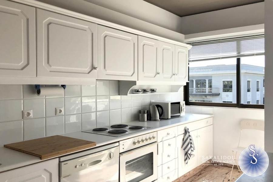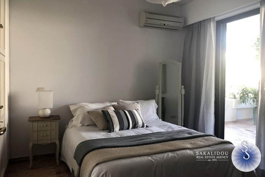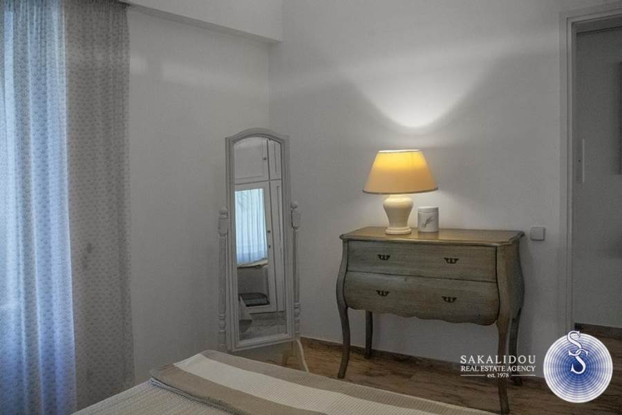 Kέντρο απόκεντρο, διαμέρισμα 110τ.μ., 3του ορόφου, ήσυχο, 50 μέτρα από τη θάλασσα, ηλιόλουστο, ευάερο, με μεγάλες βεράντες, θέα θάλασσα και καταπράσινος μεγάλος κήπος.Ανακαινισμένο το 19, πολυκατοικία του ΄90, 2 υπνοδωματίων, 1 μπάνιο, 1 WC, πολυτελώς επιπλωμένο και πλήρως εξοπλισμένο, (δίδεται κ χωρίς έπιπλα) θυροτηλεόραση, αιρκοντίσιον, συναγερμός, πόρτα ασφαλείας, ηλιακός θερμοσίφωνας, θέρμανση αυτόνομη, δορυφορική τηλεόραση, τέντες, αποθήκη και parking.
