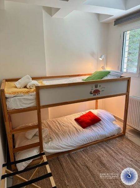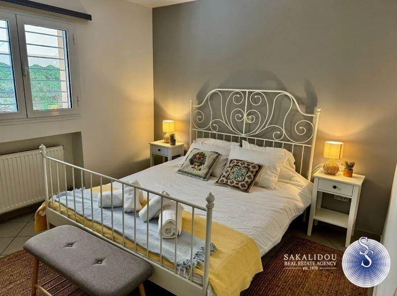 Βούλα Κάτω, πλήρως επιπλωμένο και εξοπλισμένο διαμέρισμα προς ενοικίαση, 75 τ.μ., ισόγειο, πρόσφατα ανακαινισμένο, ευχάριστο και φωτεινό διαμέρισμα, κατασκευής 2003, με χρήση τμήματος κήπου και θέση στάθμευσης σε πιλοτή.Διαθέτει δύο υπνοδωμάτια, καθιστικό, 1 μπάνιο, ανεξάρτητη χωριστή κουζίνα, έχει όλες οι ηλεκτρικές συσκευές, πιάτια, ποτήρια κλπ., με θέρμανση αυτόνομη - πετρέλαιο, πόρτα ασφαλείας, κουφώματα αλουμινίου με σήτες, τρία air condition.Δεκτά κατοικίδια.