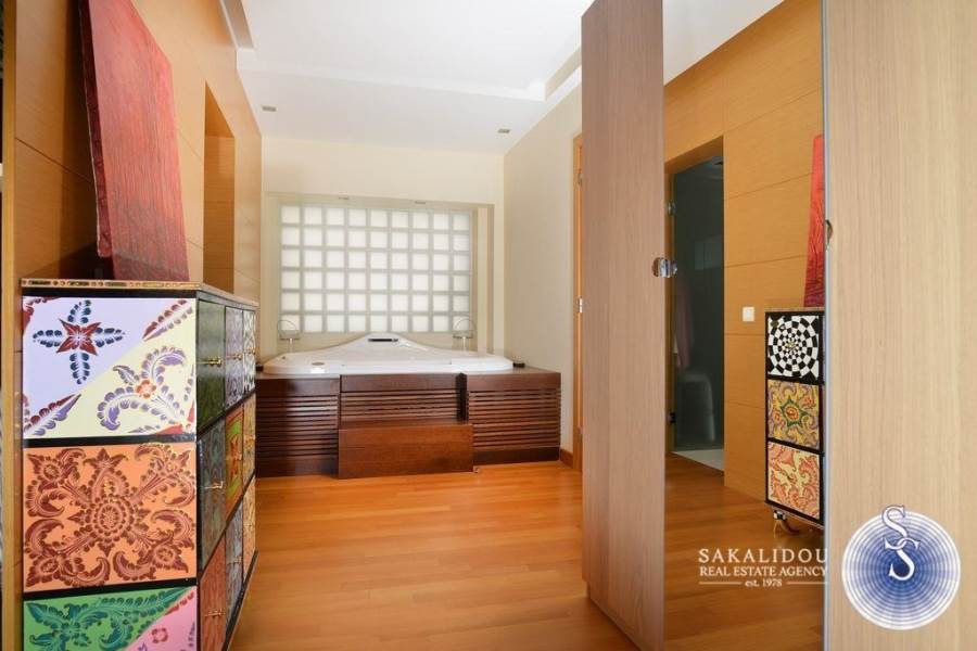 Βούλα, Εφοπλιστικά, γωνιακή νεόδμητη minimal μεζονέτα σε τέσσερα επίπεδα 500 τ.μ, καταπληκτική θέα βουνό - θάλασσα. Διαθέτει εσωτερική θερμαινόμενη πισίνα με jacuzzi, ψηλοτάβανο χώρο υποδοχής με τζάκι, μοντέρνα ανοιχτή κουζίνα με νησίδα, εσωτερική σκάλα, 3 master υπνοδωμάτια με πολυτελή μπάνια, playroom - γυμναστήριο με hammam, ενδοδαπέδια θέρμανση, δρύινες πατώματα, αποθήκη και 2 κλειστές θέσεις στάθμευσης.