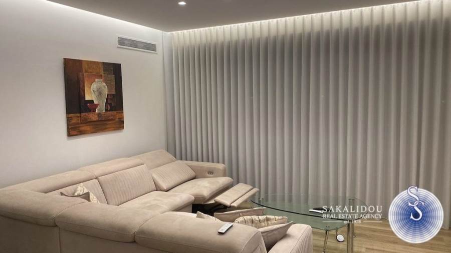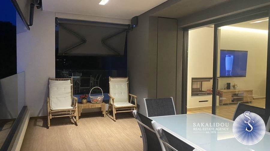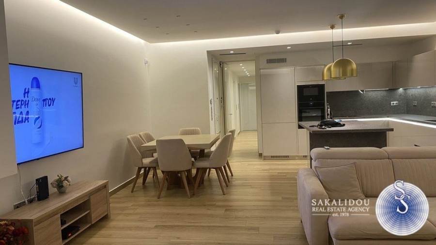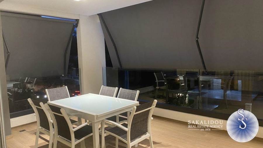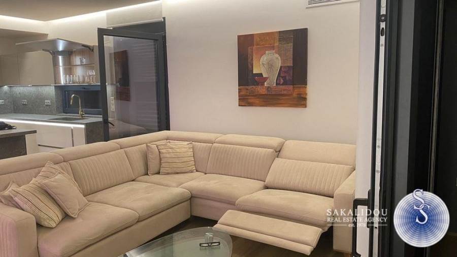 Voula Kato, brand new modern fully furnished and equipped 1st floor apartment of 117 sq.m., Minimal Design, with private garden, has a comfortable and full of light lounge room area, fireplace, open plan modern kitchen fully equipped with branded built-in electrical appliances, 3 bedrooms , one Master, bathroom, oak floors of excellent quality, terraces, awnings, screens, independent heating, alarm, storage room and a parking space. In a very nice neighborhood, close to the beach and the center of Glyfada.