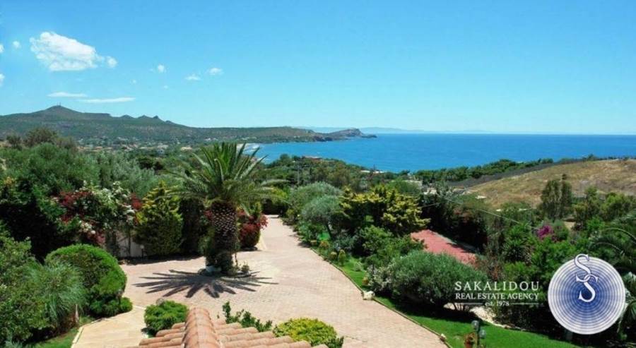 Anavyssos, great villa for sale of 430 sq.m., on a plot of 5900 sq.m., with a green garden, very nice environment, fantasticlocation, with large swimming pool , Tennis court , parking, Luxurious construction!It has amazing sea view and horizon from all levels ( in two levels ), very bright property and next to the beach.