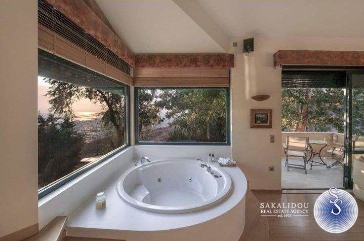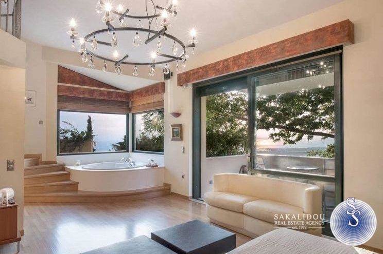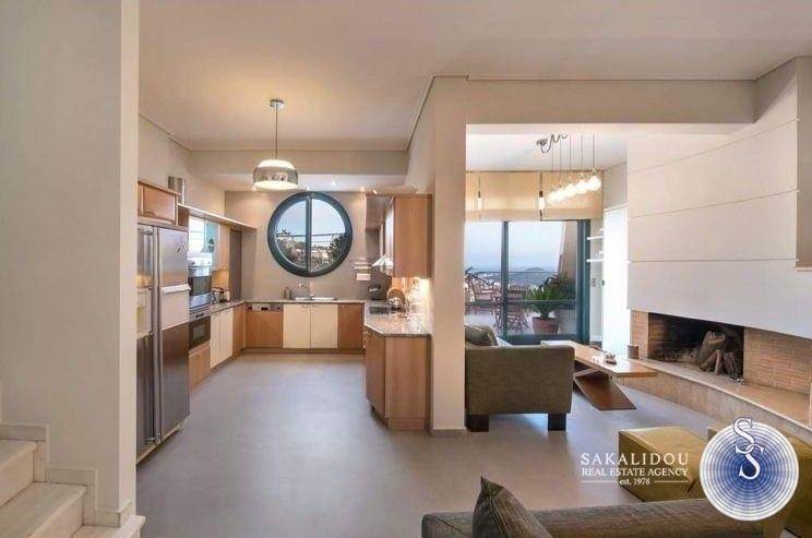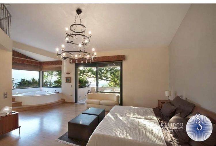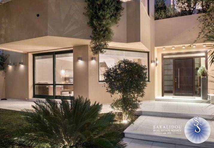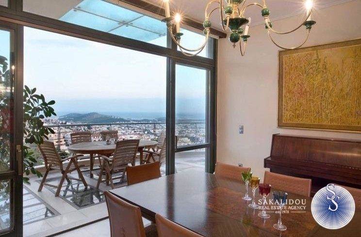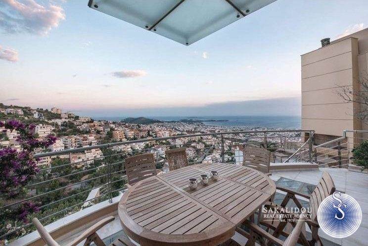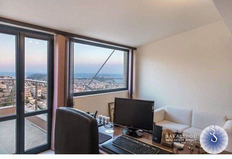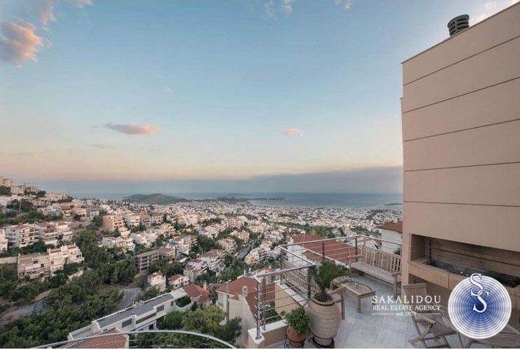 Voula, Panorama, luxury house 650 sqm, with fantastic sea views, built on 3 levels on a plot of 410 sq.m. It consists of living room with garden view, large kitchen fully equipped with living room and fireplace, 5 bedrooms, one is master en-suite with Jacuzzi, independent studio guest house and large playroom with gym and office. It has an elevator and is surrounded by a beautiful area with pool and BBQ. It has an underfloor heating, storage room and 2 parking spaces.