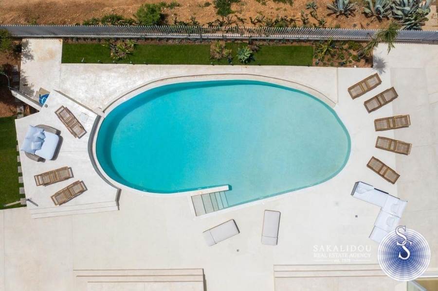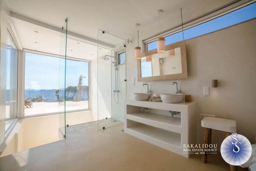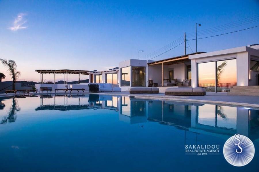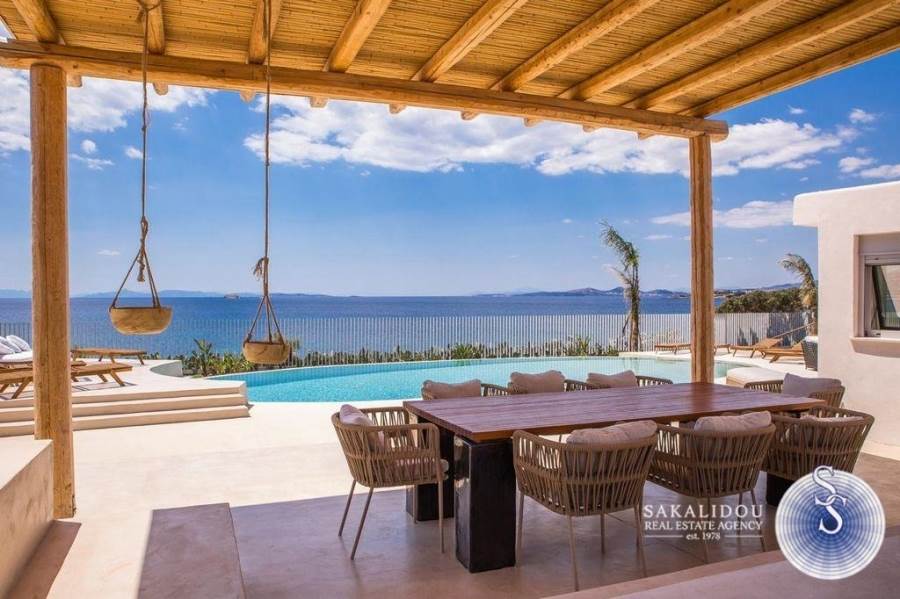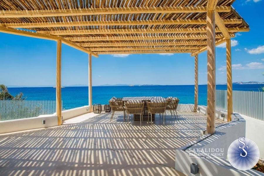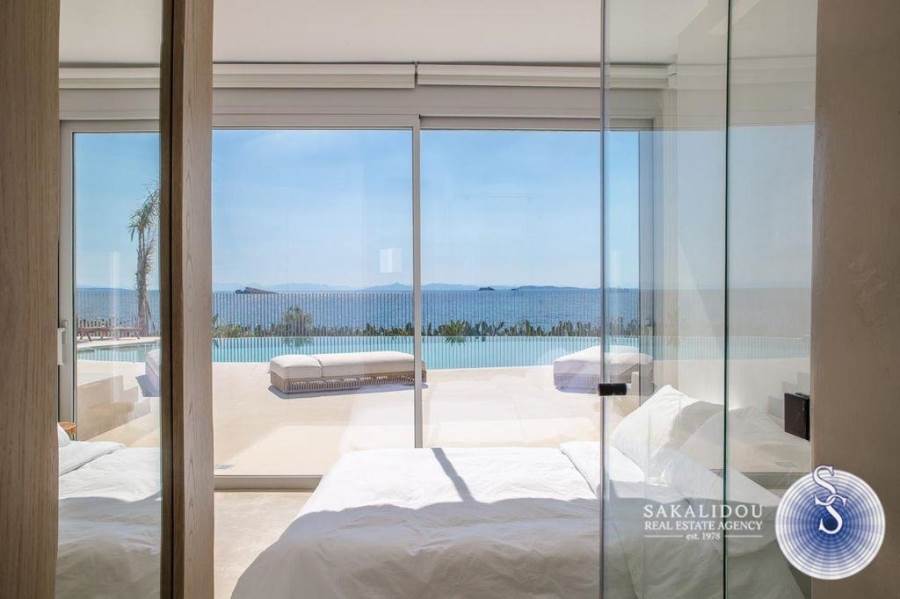 Sakalidou Real Estate Agency is excited to offer to the market this unique, luxury house of 380 sq.m in Saronida, in front of the sea with unrestricted sea view and swimming pool, on a plot of 2000 sq.m, minimal construction of 19. It consist of 6 master bedrooms, living rooms with fantastic sea view, independent heating, alarm system, security door, double glazing, air conditioning and separate house guard. The property benefits from generously proportioned rooms and is finished to the highest of standards.