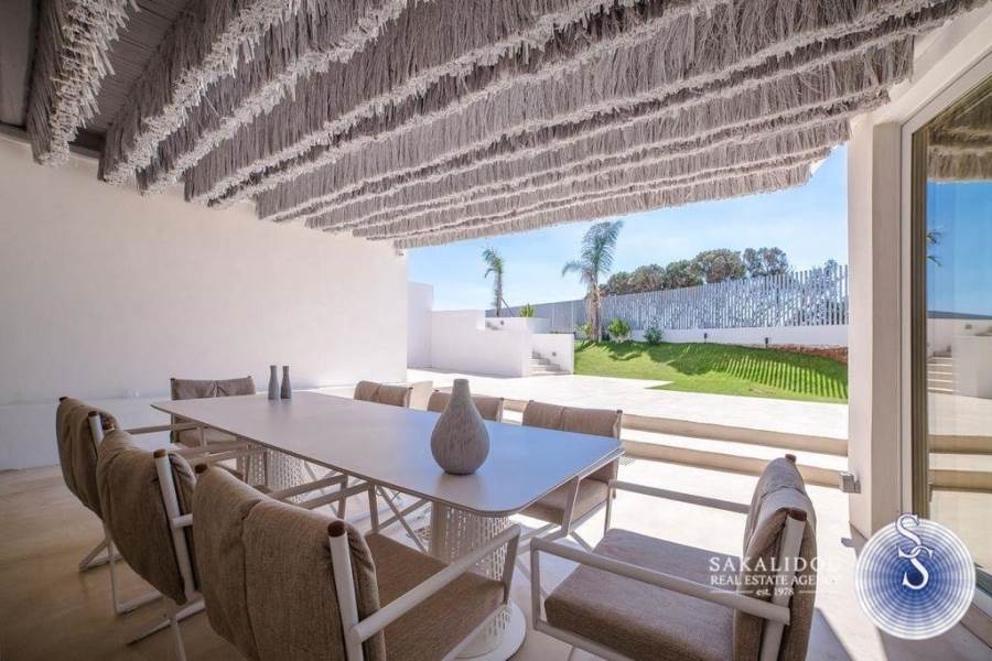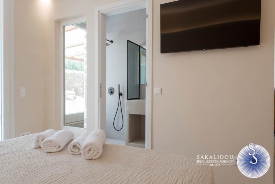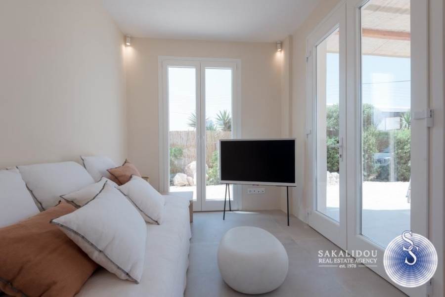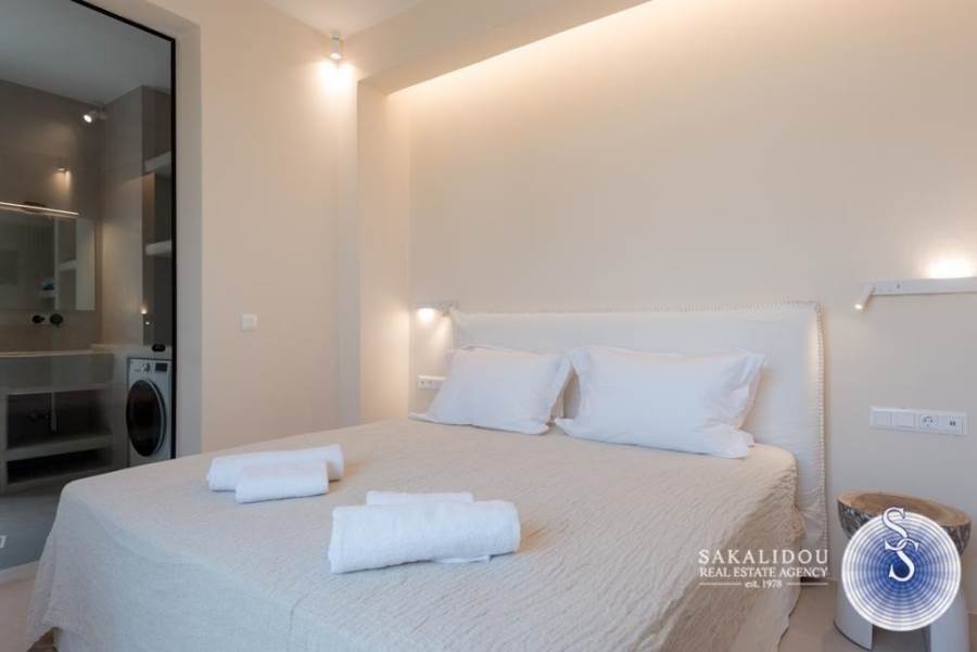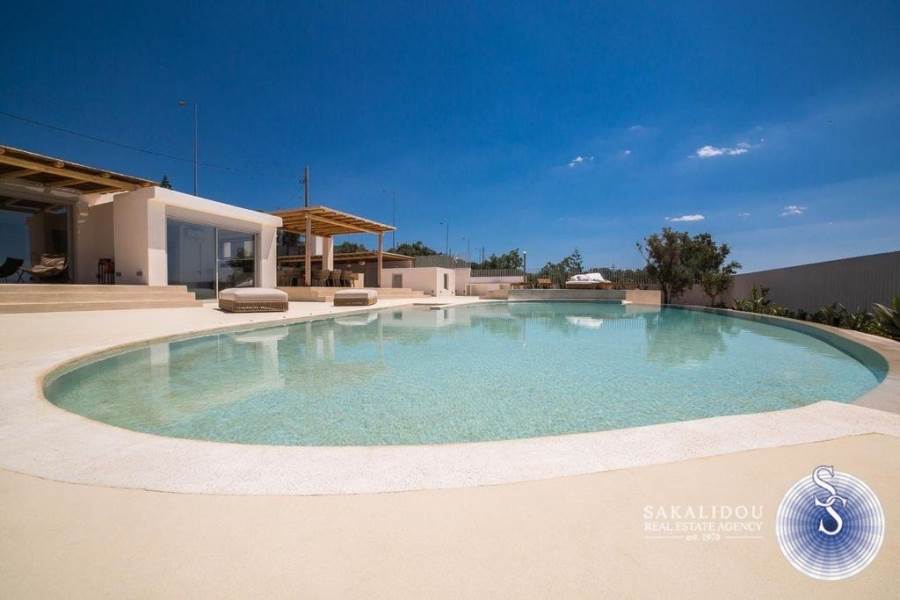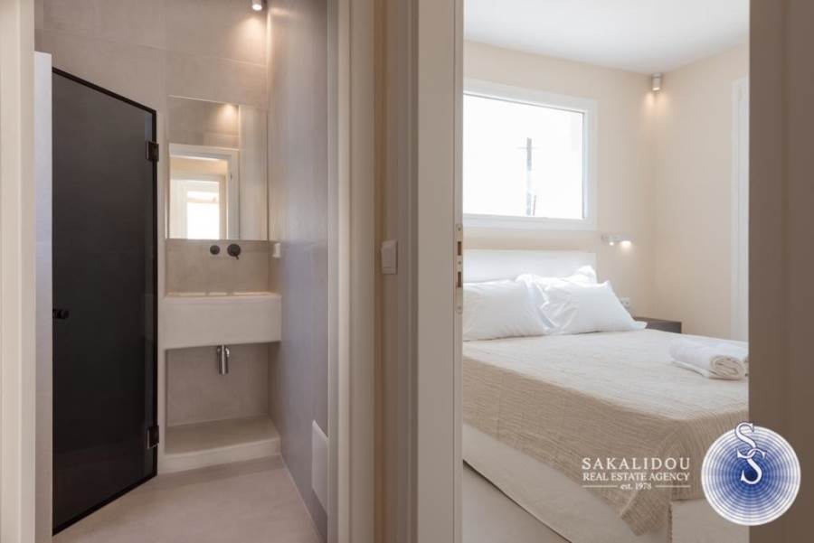 Sakalidou Real Estate Agency is excited to offer to the market this unique, luxury house of 380 sq.m in Saronida, in front of the sea with unrestricted sea view and swimming pool, on a plot of 2000 sq.m, minimal construction of 19. It consist of 6 master bedrooms, living rooms with fantastic sea view, independent heating, alarm system, security door, double glazing, air conditioning and separate house guard. The property benefits from generously proportioned rooms and is finished to the highest of standards.