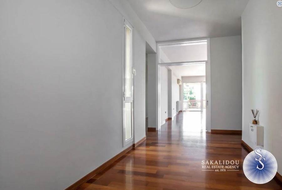 GLYFADA NEAR THE CENTER, great 2nd floor apartment of 200 sq.m., fully renovated, with sea view, very bright, comfortable living room/sitting room with fire place, separate fully equipped kitchen, 3 bedrooms, 1 Master, extra office room, independent heating, air conditioning, alarm system, garage.