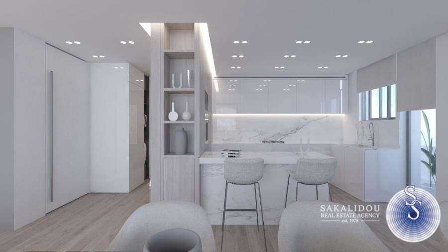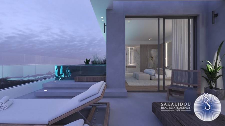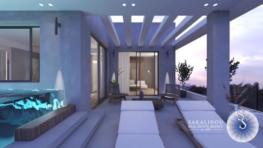 Glyfada Kato, Minimal Design, 4th floor apartment, of total area 151 sq.m. penthouse, with exclusive use of the terrace and private pool, pergola - roof garden, construction starting year 2025, luxury property on 1 level, consists of a comfortable and very bright living room - dining room in continuation of the kitchen area - can be completely independent, in total 3 spacious bedrooms, the 2 Master, walk-in closet and 1 minimal design guest WC, in total it has 2 bathrooms. All bedrooms have very large balconies with amazing views and openness. For the Inside, particular emphasis has been placed on the optimal layout of the spaces, ensuring comfort and functionality in the residence, while at the same time the high-quality materials used upgrade the quality of the space. The building is energy class A+, with underfloor heating from a heat pump. It has an air conditioning installation and natural gas supply. Its use is smart home and has a car charging facility. It has one parking space in the basement and one open pilotis. The building is located in an excellent location, a residential zone within the center of Glyfada, walking distance of the trade axis of the area, on the beach front of the Athenian Riviera, investment property, airy, frontage, bright, near the market, central square and close to means of public transport.