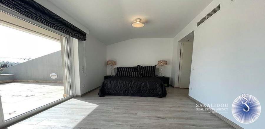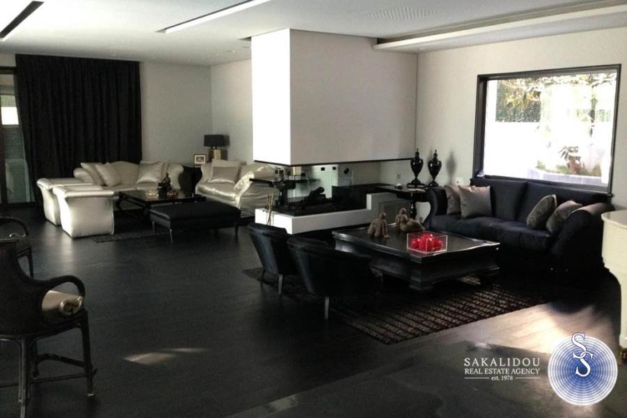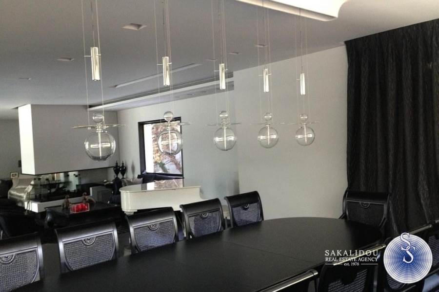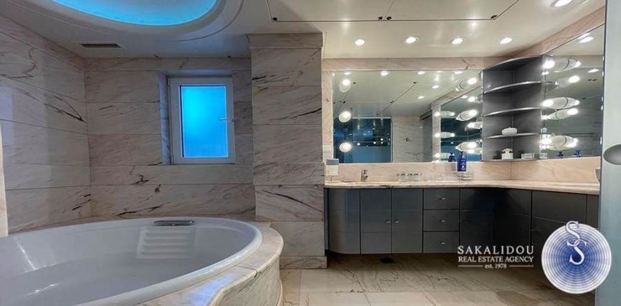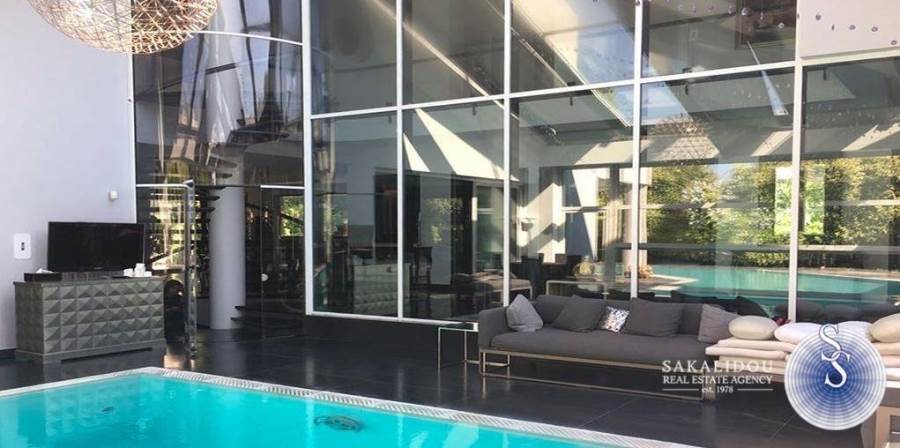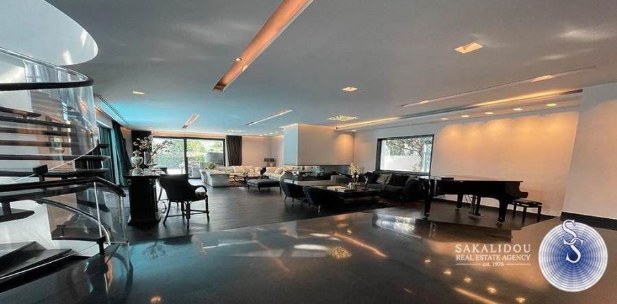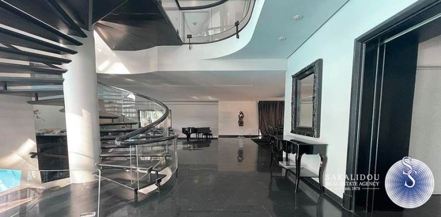 Unique 4-level villa of 1085 sq.m. minimal design, in the center of Glyfada on a plot of 1,200 sq.m. It consists of a huge living - dining room and an open kitchen, 5 master bedrooms (one with a dressing room), and a maid`s room with a kitchen. An impressive, large swimming pool dominates the indoor and outdoor areas. It also has a laundry room, elevator, sauna, jacuzzi, natural gas and oil heating, underfloor heating, huge underground garage and storage rooms. The property has been built with luxurious materials, and its location is excellent, in the center of Glyfada, within walking distance of the beach and the market.