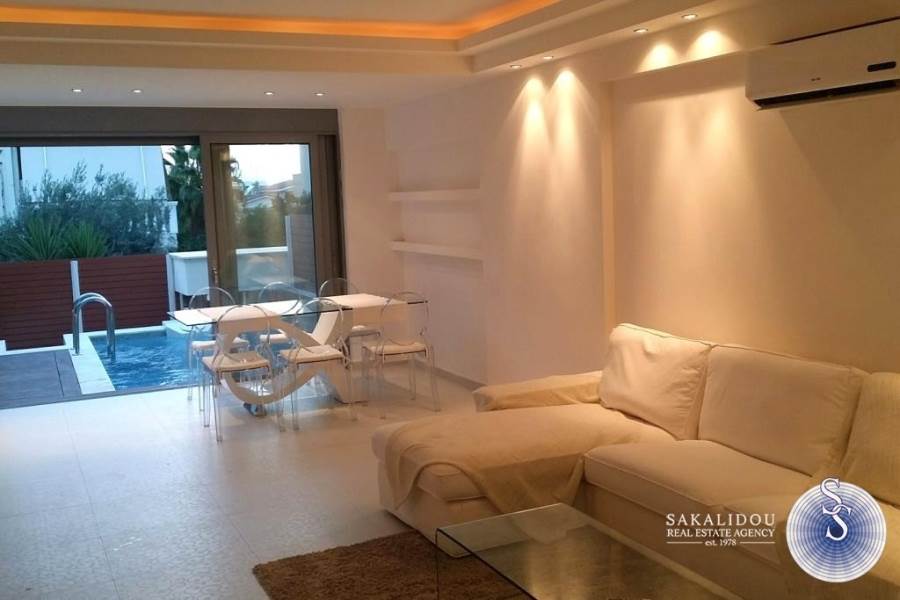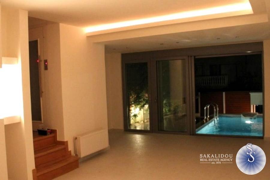 Voula, Ano, luxurious Furnished maisonette 250 sq.m of 4 levels, with swimming pool bbq and garden, It has living room with fire place, 3 bedrooms, one is master with fire place and dressing room, maid`s room with bathroom, elevator, wooden floors, independent heating, elevator, air conditioning, storage and garage. Could be rented without furniture.