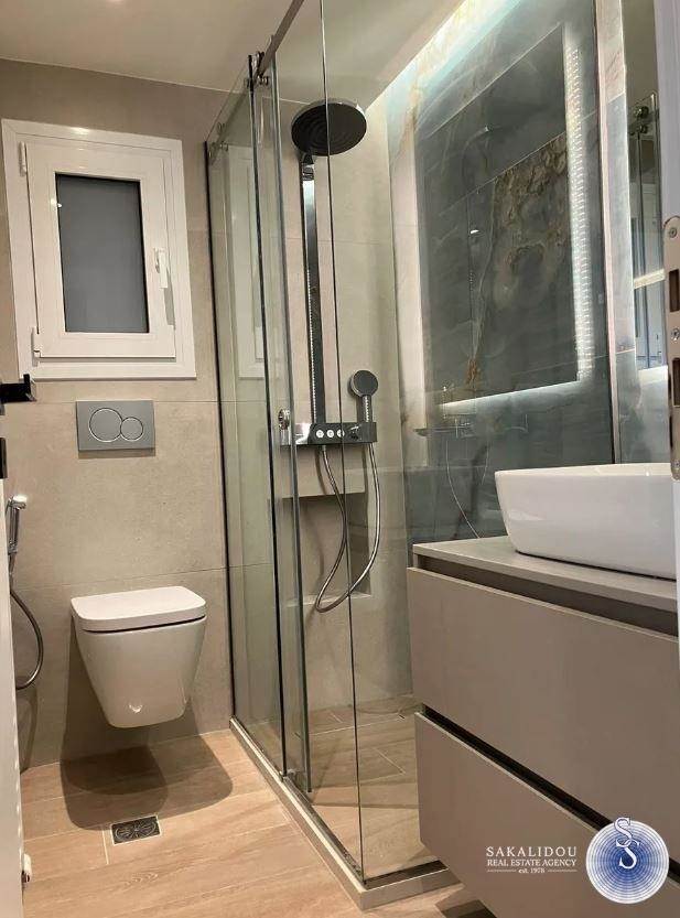 Fully renovated & energetically upgraded apartment of 58 sqm, 2nd floor. It consists of a living room with an adjoining kitchen, two bedrooms, a bathroom, plenty of storage space and a large terrace. It has energy autonomy for cooling/heating with a heat pump, security door, double energy glazing, new frames with thermal break, screens and thermal facade. It is located between the beach and the square.