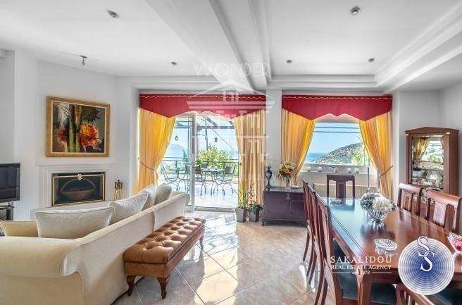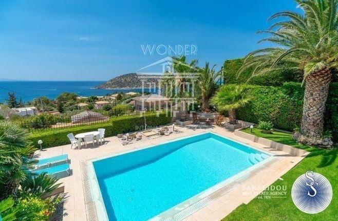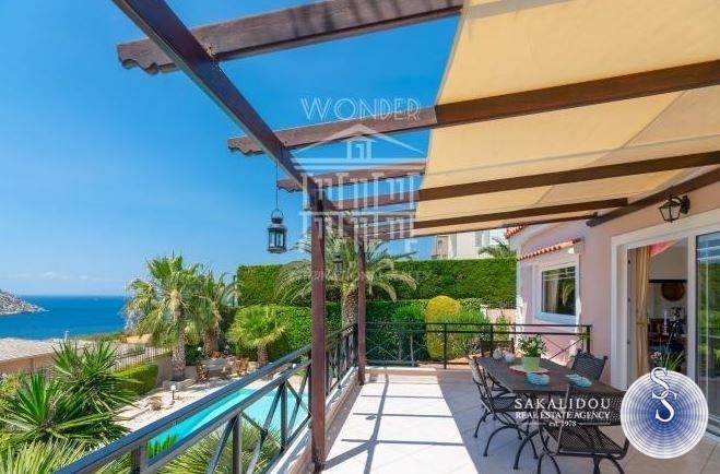 Anavyssos, Agios Nikolaos, Luxury Villa in excellent condition, with unlimited sea view - horizon and in a very quiet area and beautiful neighborhood. The property was built in 1992 and consists of the basic detached house of 160 m2 that covers all the needs of a family and a studio apartment of 35 m2 that can be used as a guest house, as a second residence or as a service house. The independent ground floor - 1st floor detached house with a total area of 195 sq.m. on a plot of 500 sq.m. . consists of 3 bedrooms, living room, kitchen, 4 bathrooms, with energy class D and has autonomous heating - oil, sea view, aluminum frames, tiled floors, armored door, built-in wardrobes, parking, storage, garden, fireplace, swimming pool, A/ C, alarm, electrical appliances, awnings, double glazing, solar water heater, BBQ, opening, internal staircase, balconies 50 sq.m.The construction was done with a desire for the best result and for this reason the best materials of its time were used. It is maintained daily and the result is surprising, as there is no blemish. From all the main areas of the house we can see the sea, the wonderful swimming pool and the green garden. Its exterior areas are very comfortable, there is a bbq and a large area for the pool deck chairs. It has wooden pergolas for shading. Surrounding the property are equally luxurious properties that complement the excellent image of the ideal neighborhood to which it belongs. Distance from the sea 500 meters