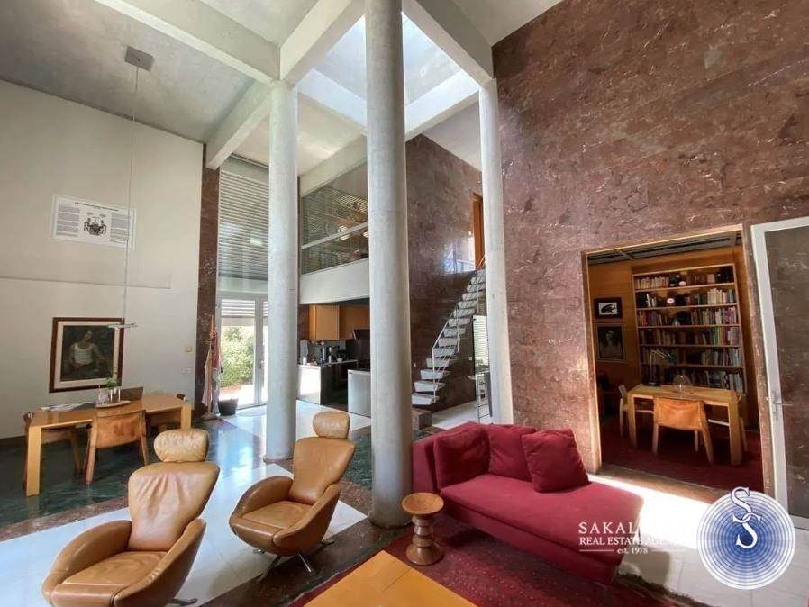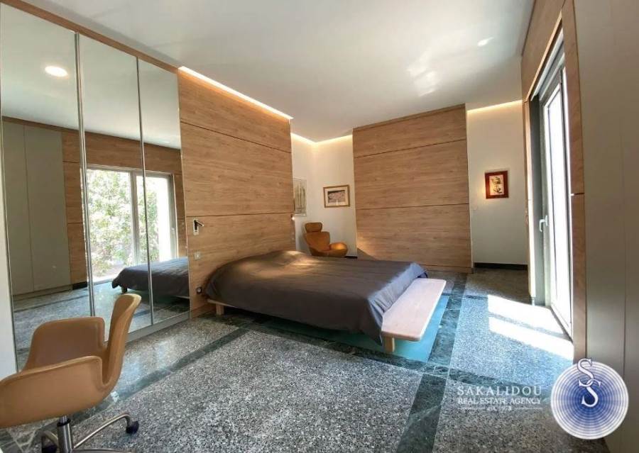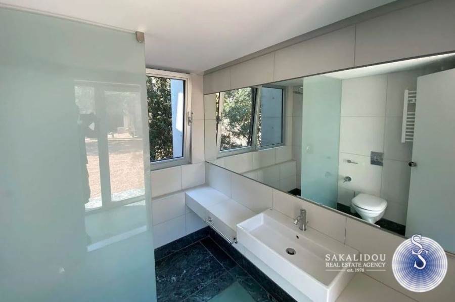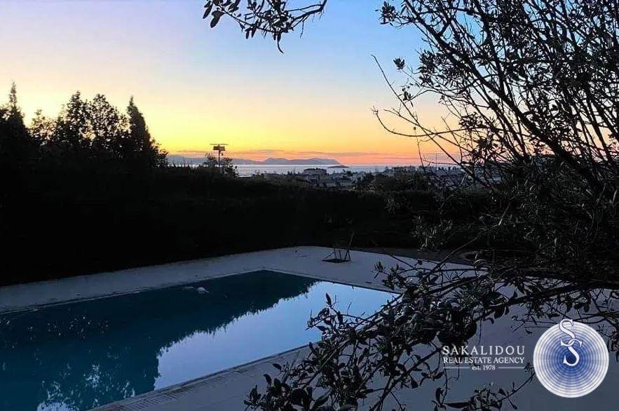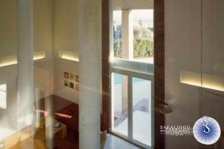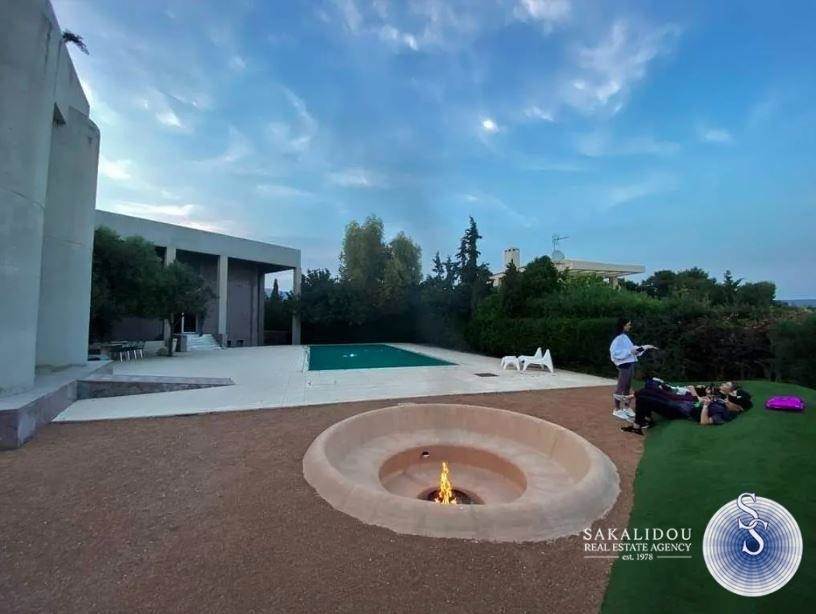 Varkiza, unique super lux villa of 3 levels 700 sq.m., on a plot of 3200 sq.m., year of construction: 2000, unique architecture and aesthetics, with beautiful sea view. It consists of 3 volumes which communicate externally, reception area with glass patio, high ceiling living room, unique garden with pool 80 sq.m with overflow, independent guest house of 100 sq.m., staff apartment, underfloor heating, wooden floors, security door and closed garage.
