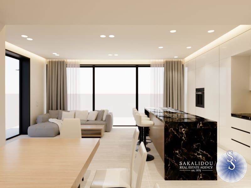Voula, Ano, maisonette 128 sq.m. under construction, extends over 2 levels and has 3 spacious bedrooms, one of which is a master, modern kitchen, 2 bathrooms and wc. Heating is via an autonomous natural gas system, and the maisonette has air conditioning for hot summer days, as well as underfloor heating for cold winter days. The sea view from the bright and airy living room is unrepeatable. The maisonette is bright and located in a quiet and green environment. At the same time, it has a parking space and a warehouse.