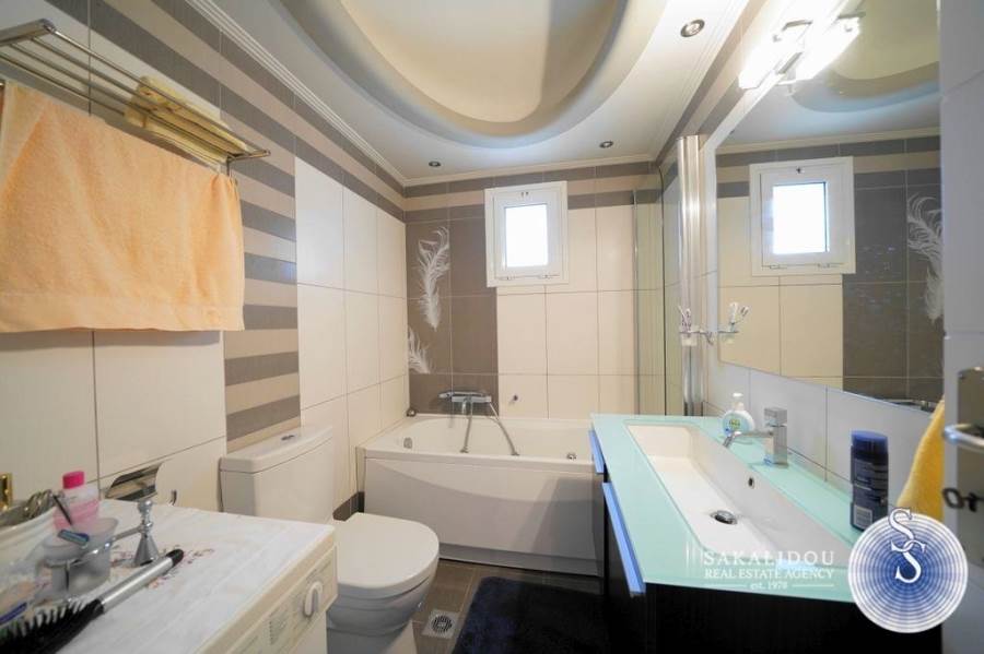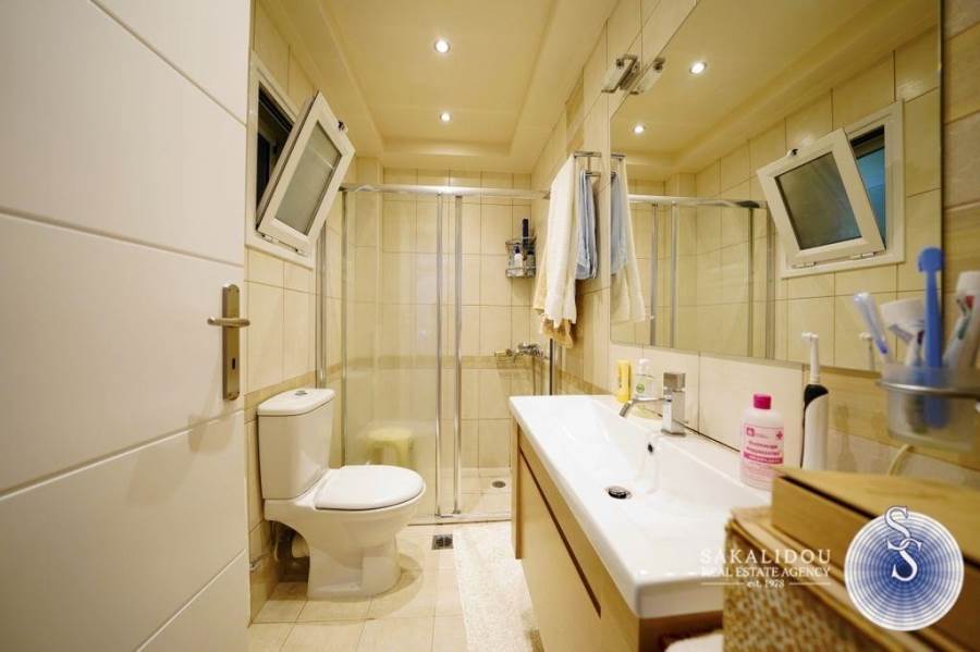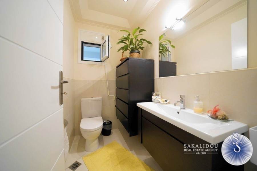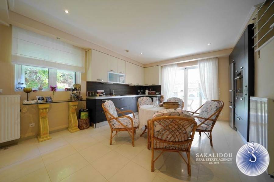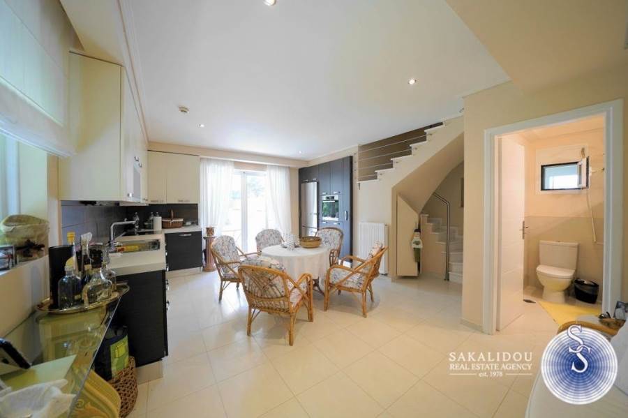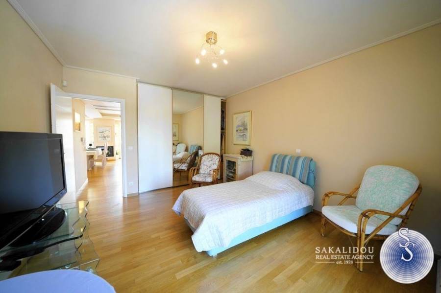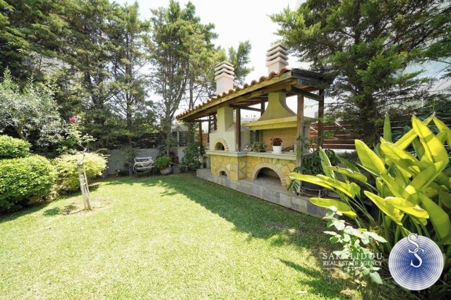 In the Athenian Riviera, In Glyfada Center, there is a luxurious modern maisonette 145 sq.m. for sale, it’s on the ground floor and 1st floor, with a great private garden 150 sq.m. with BBQ, and high-quality materials. The maisonette consists of 2 spacious bedrooms master, 2 bathrooms, w/c, kitchen with sitting room, living room with fireplace, central air conditioning system, satellite TV, electric hoover equipped, and automatic systems. It has parking in the basement and a storage room. The location is great, within walking distance to the center of Glyfada.