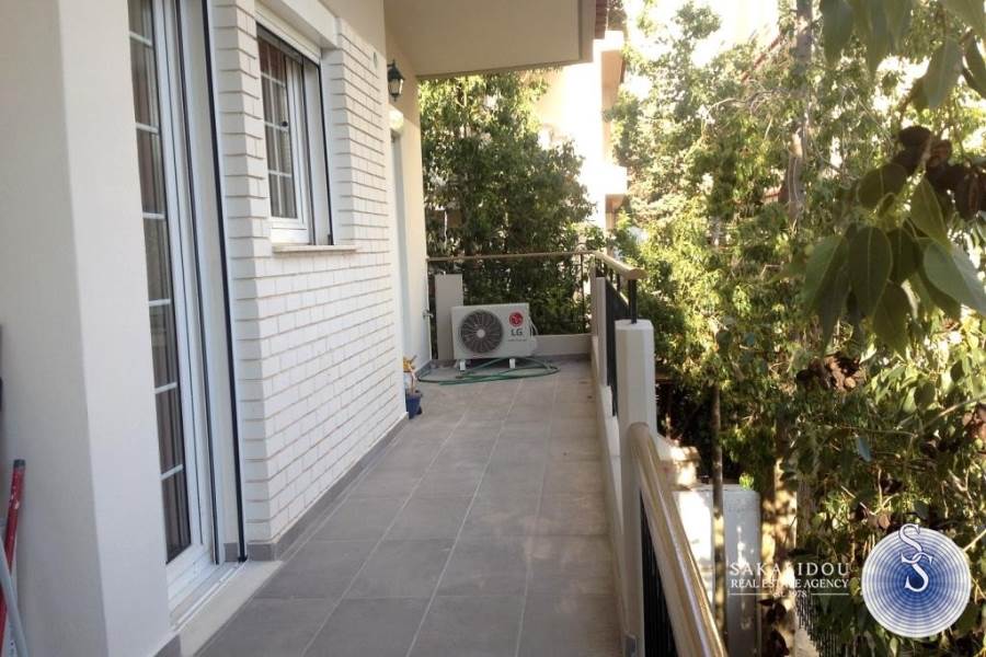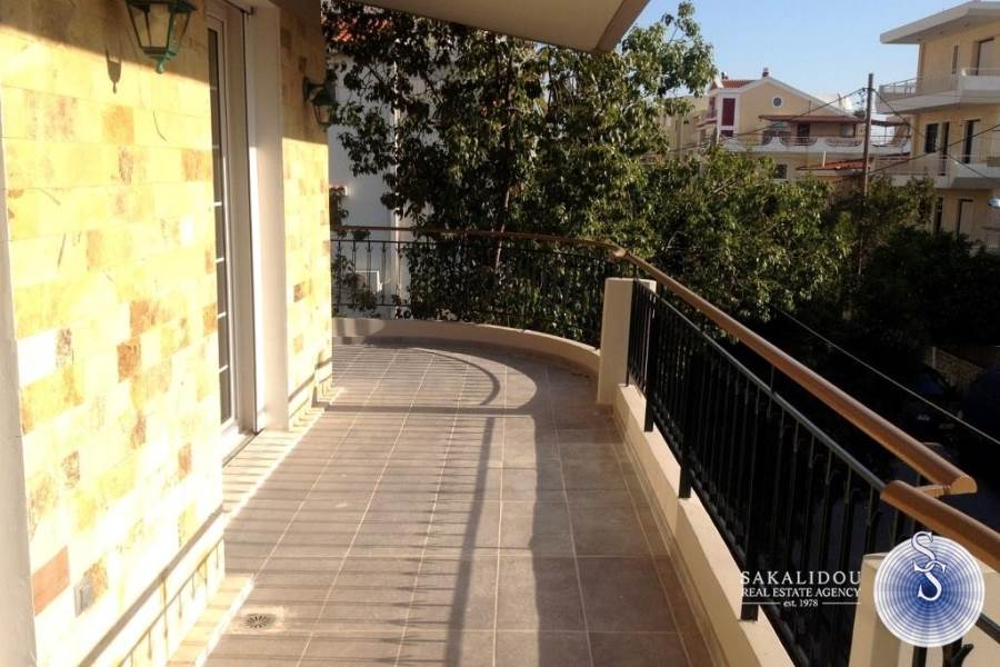 Glyfada, Pyrnari, Floor Apartment For Rent, 130 sq.m., Floor: 2nd, 1 Bathroom(s), 1 WC, Heating: Petrol, Building Year: 2018, 1 parking(s), Features: Security door, Security alarm, CCTV, Double Glazed Windows, Sieves, Balconies, Airy, Bright, AirConditioning, Solar water system, Boiler, Back yard (Garden), New Development, Price: 1.200€.