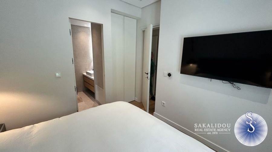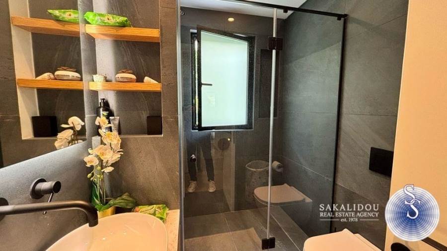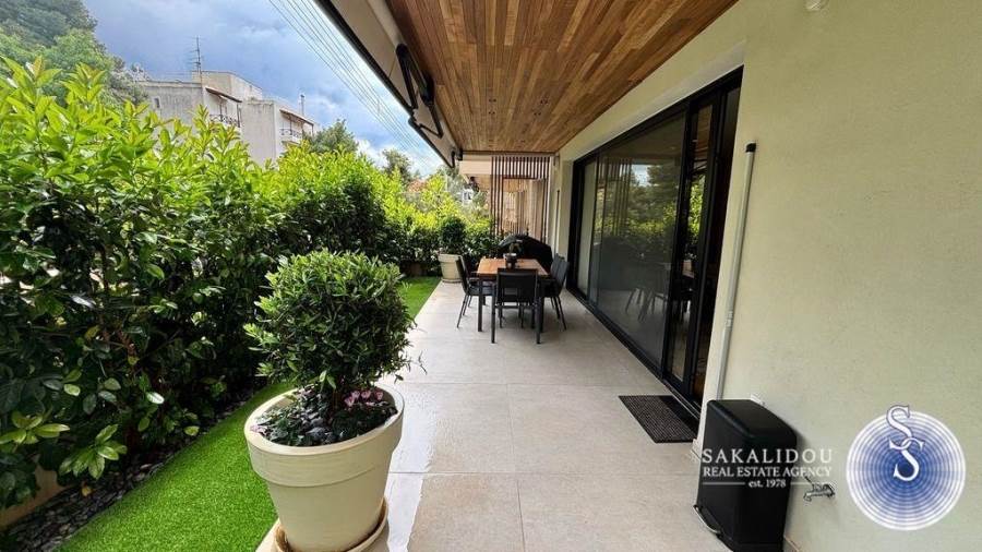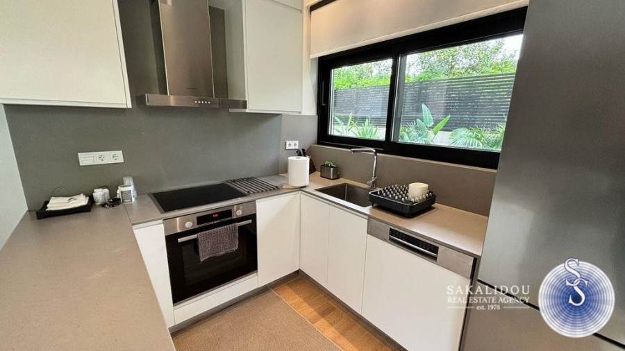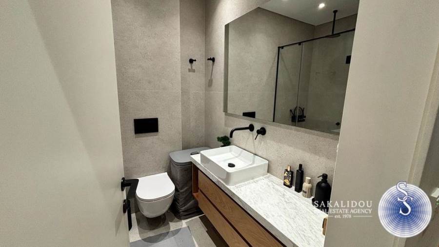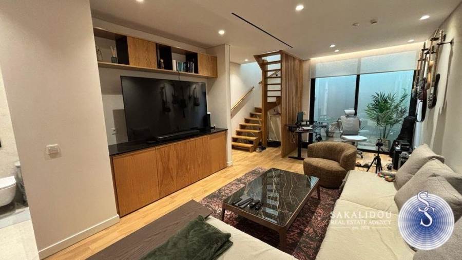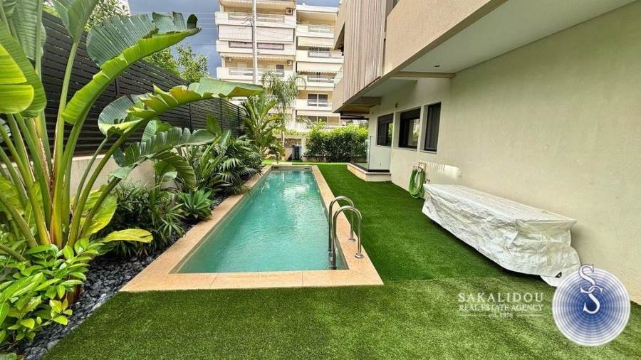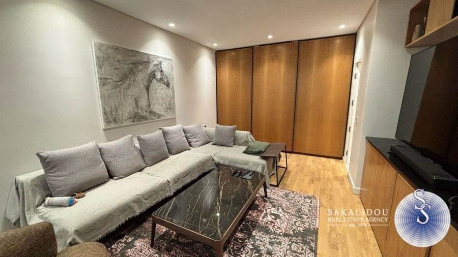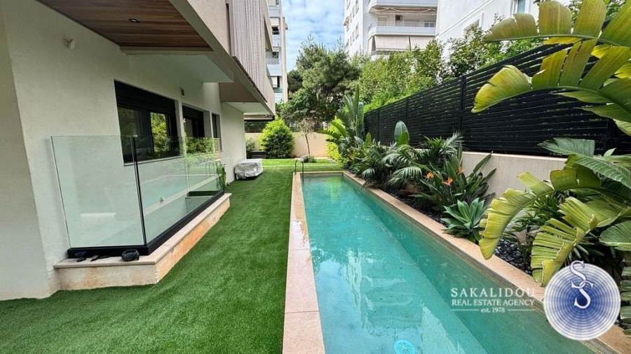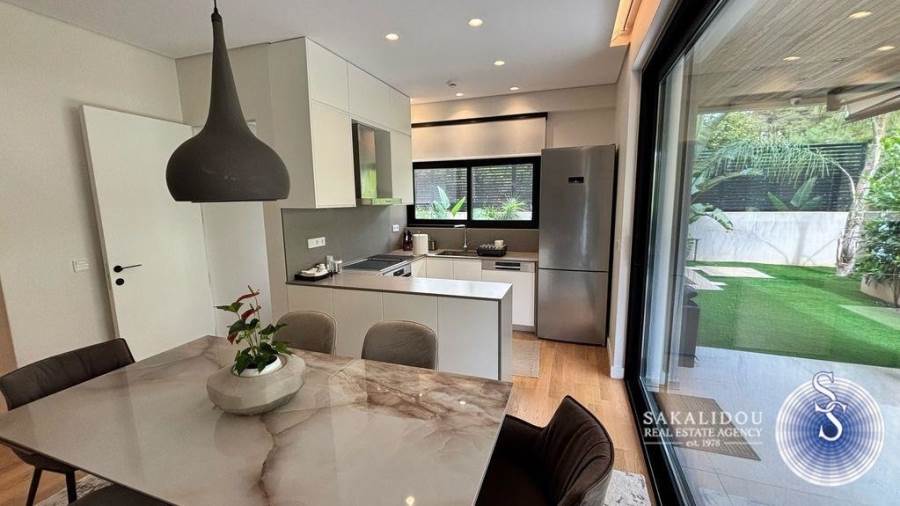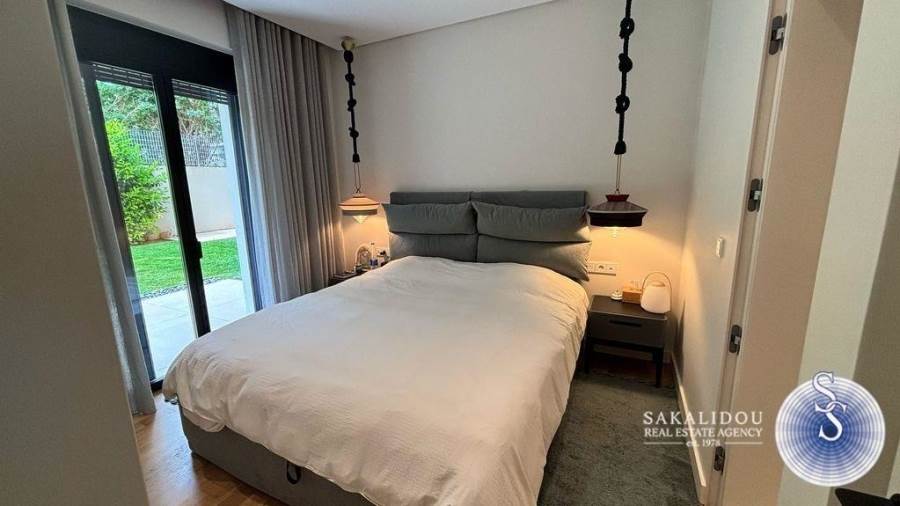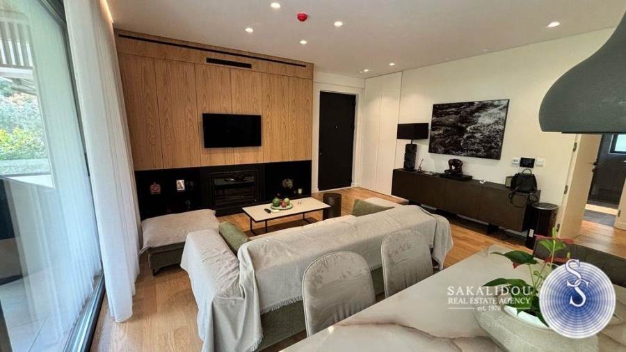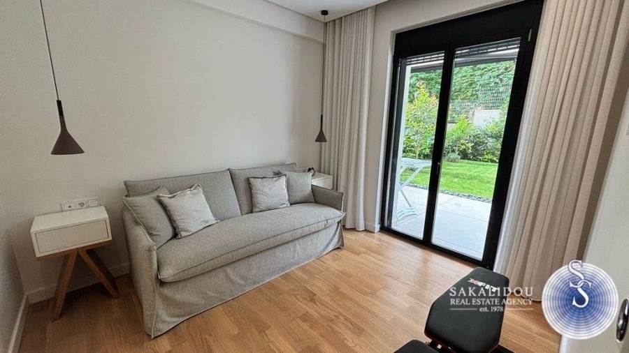 In an excellent location in Vari-Varkiza, in a newly built apartment building that was inhabited for the first time in 2023, a ground-floor maisonette is for sale, with exclusive use of a pool and garden. The maisonette follows a minimal design and is fully furnished and equipped, spread over 2 levels, with a total area of 130 sq.m.The ground floor level has an area of 90 sq.m. and includes an open-plan living room, kitchen, and dining area, which leads to an exclusively used garden with a large pool. Additionally, the ground floor features 2 bedrooms, one of which is a master bedroom with an en suite bathroom, while the second bedroom has its own bathroom, which also serves as a guest WC.The lower level of the maisonette has natural light and ventilation through a *cour anglaise* and can be used either as a master bedroom or a playroom. It also has a bathroom and plumbing and electrical installations for a kitchen. Currently, it is configured as a playroom.The maisonette also includes a basement storage room and one parking space.
