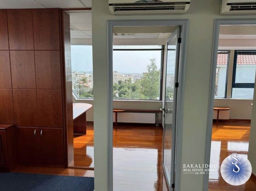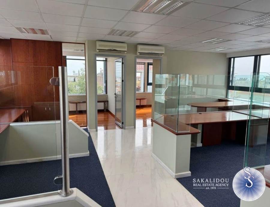 Glyfada Kato, in a central location and at a nearby distance to Vouliagmenis Ave., available for rent, a modern office on the 3rd floor of 195 sqm., with unobstructed view, in a modern building, penthouse, frontage and very bright, in an ideal location, close to public transport. Has a large single space with the possibility of configuration, modern glass partitions, a large terrace, autonomous heating, air conditioning, 2 WC, balconies, space for a kitchenette, elevator, three-phase electricity, structured cabling, fiber optics, Parking space, easy access, in an area with free parking available throughout the day. Renovated office, luxurious construction, great location, the rental price includes common expenses.