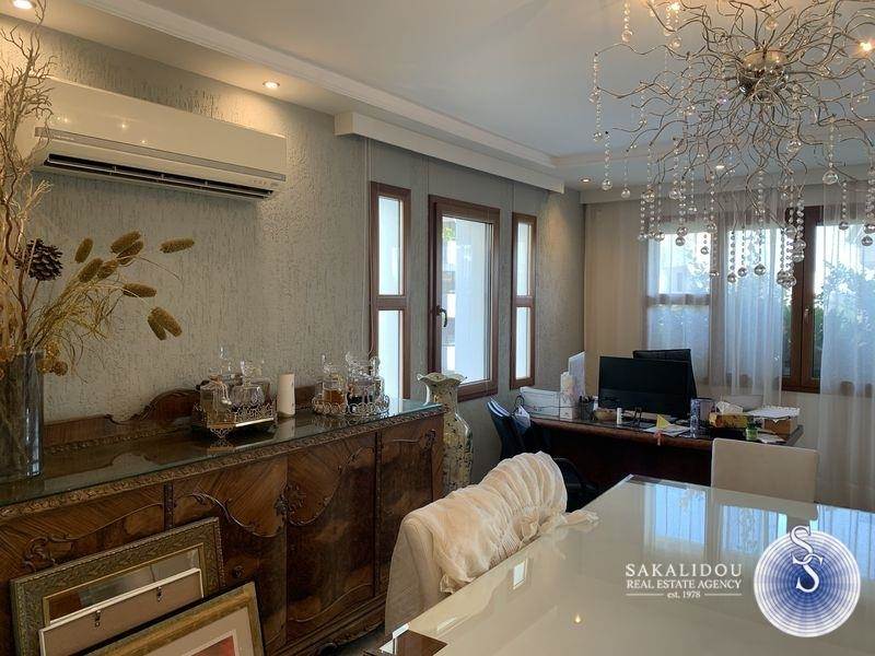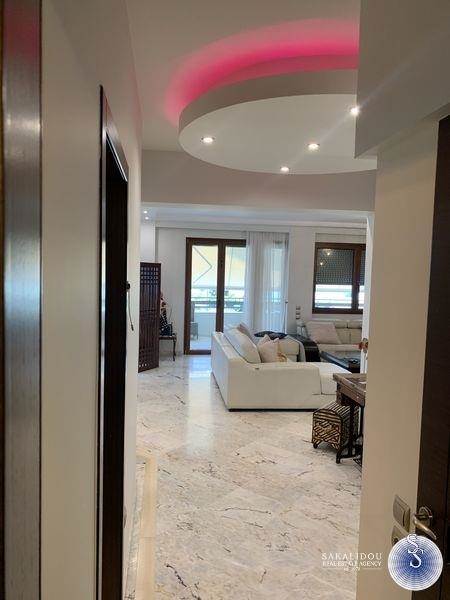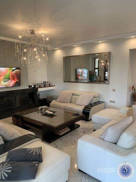 Glyfada Kato, newly built 3rd floor apartment of 150 sq.m., luxury construction, year 2008, facade, bright, unique aesthetics. It consists of a beautiful living room area with decorative hidden lighting and ceilings, a comfortable living-dining area with a specially decorated granite fireplace, a kitchen, independent but communicating in a separate and intelligent way with the main sitting room area, fully equipped with branded built-in electrical appliances. The apartment has three spacious bedrooms, with large comfortable wardrobes, one of which is a Master with its own bathroom, it has a total of two bathrooms and a WC. It has many closets/cupboards and storage spaces, security door, aluminum frames, screens, three air conditioners, alarm system, autonomous oil and natural gas heating and water heater, wide veranda and large balconies around, with electric awnings, big parking place and basement storage room. The floors are marble and parquet in the bedrooms. Available furnished but also can be given semi furnished. The location of the building, consisting of 4 floor apartments, is on one of the most beautiful streets of Glyfada, easy access, in a very privileged location, nice environment, investment, near market, 300m. from the central square, close to the neighboring market, schools and transport on foot.