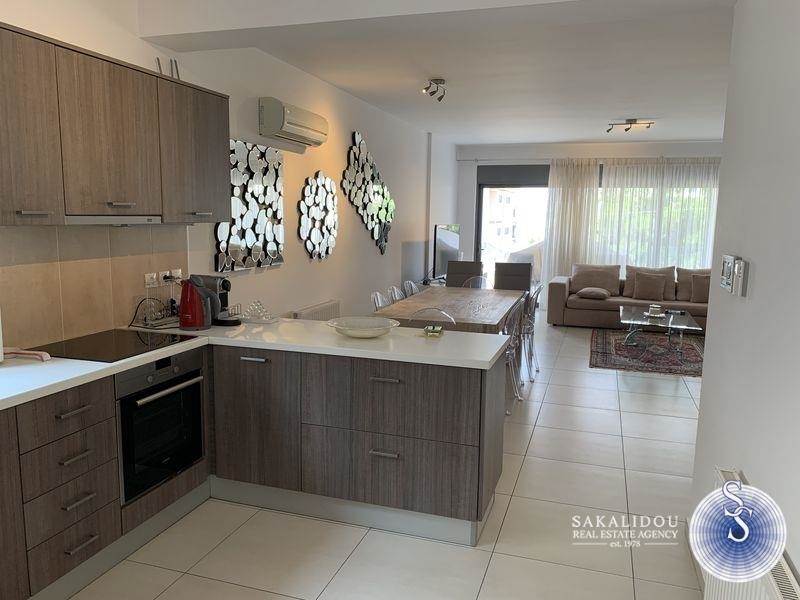 Glyfada Center, Newly built and very Modern 3rd floor apartment, Minimal Design, in very good condition and construction, with very expensive materials, total area of ​​107 sq m., has very good view and openness, a comfortable and bright reception area and dining room, open kitchen area, 2 bedrooms, 1 full bathroom, 1 WC, electric aluminum roller shutters, autonomous heating (Natural gas), central air conditioning unit, solar water heater, verandas, double glazing, screens, security doors, elevator, night power, awnings, with underground parking and a 12 sq m storage room, garden, very nice environment, easy access, next to Golf park area, close to the square and the sea on foot. Investment apartment due to location, with building permit 2010, inhabited in 2013, in a building of excellent aesthetics. Rented until 30/11/25.