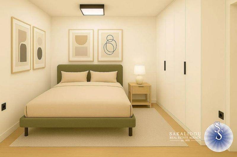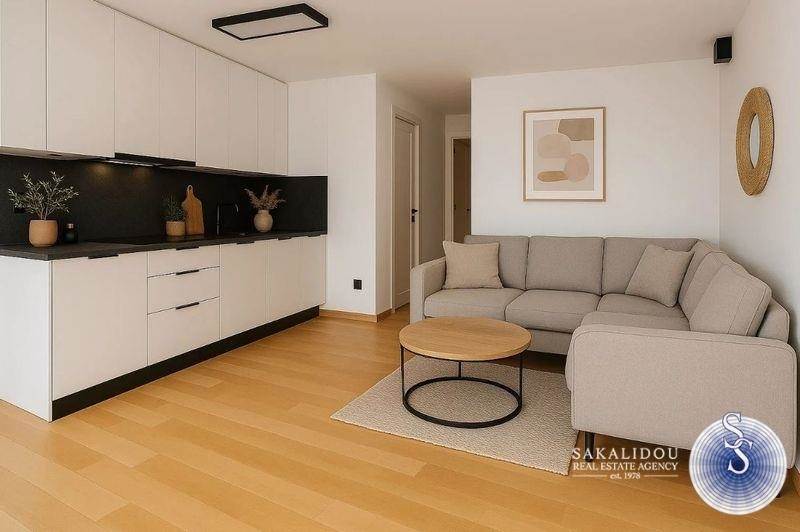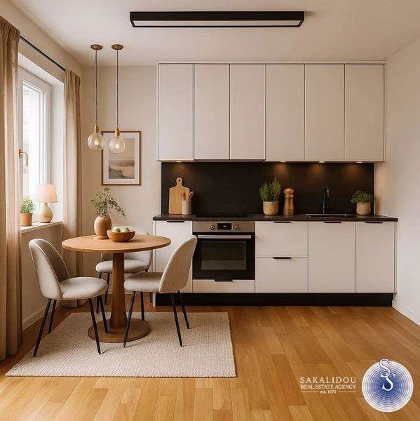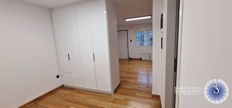 Vouliagmeni, renovated ground floor apartment of 40 sq.m. with garden. It consists of a living room, kitchen, and 1 bathroom. It features oak flooring, security door, electrical appliances, double-glazed windows, insect screens, awnings, verandas, and air conditioning. Available also furnished at another price.