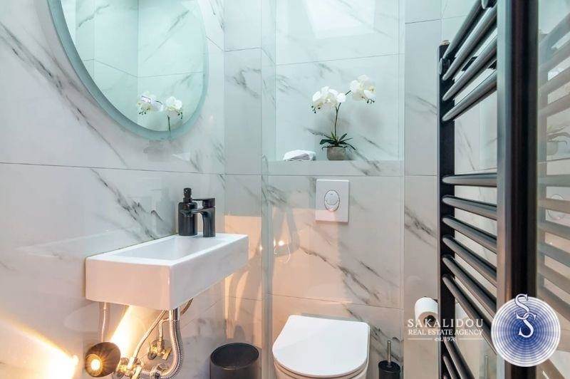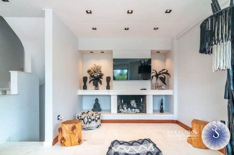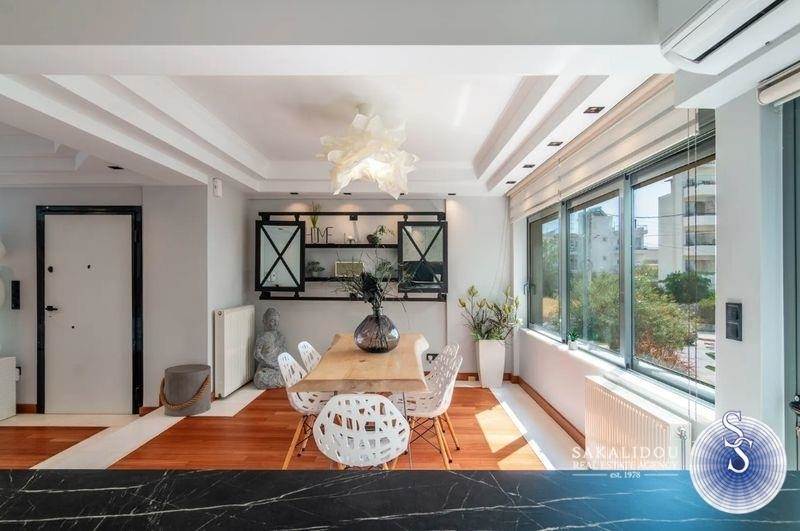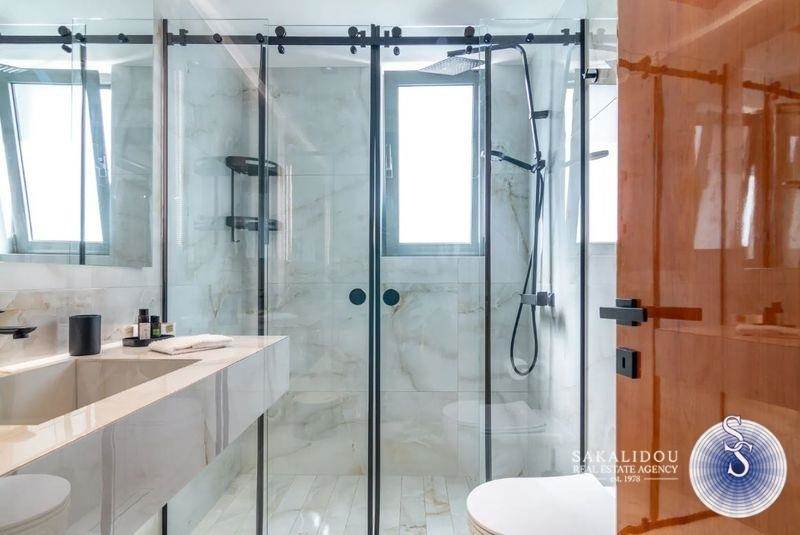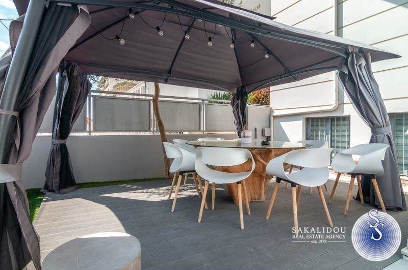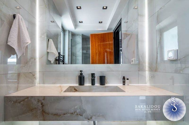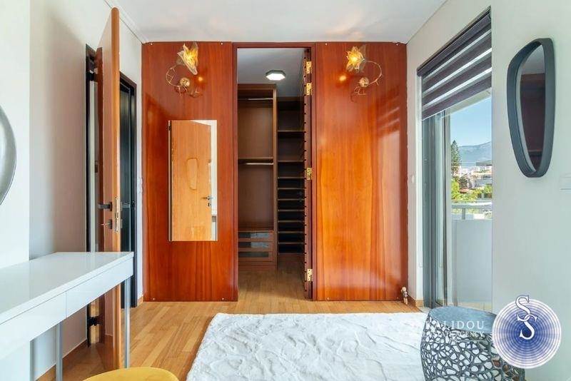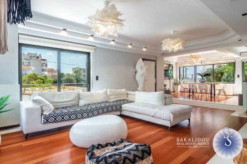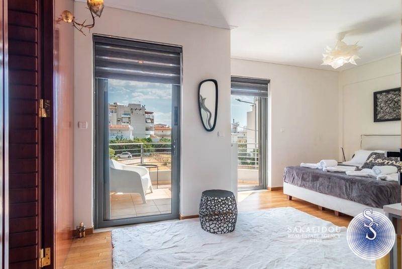 Glyfada, Evryali area, modern, fully renovated detached family house 270 sq.m., luxury, with a 40 sq.m. swimming pool, garden, outdoor jacuzzi, biometric pergola, renovated in 2024, 3 levels fully furnished with new furniture. In detail, it has 2 living room areas, 2 kitchen rooms fully equipped with built-in branded electrical appliances, 3 bathrooms, 2 WCs, outdoor Jacuzzi, elevator, air conditioning, solar, autonomous heating (Oil), screens, verandas, alarm, security doors, 2 closed parking spaces, storage room, playroom, attic and unobstructed sea views from almost all levels. Available furnished or unfurnished.