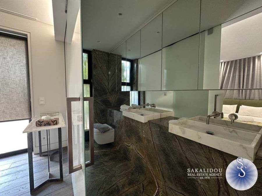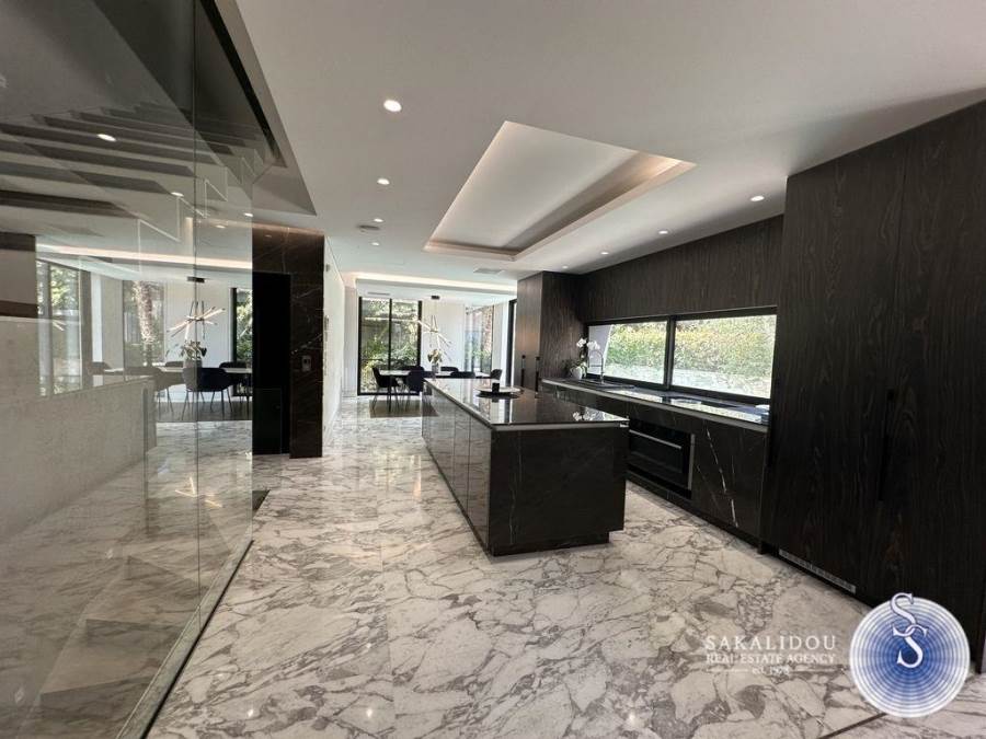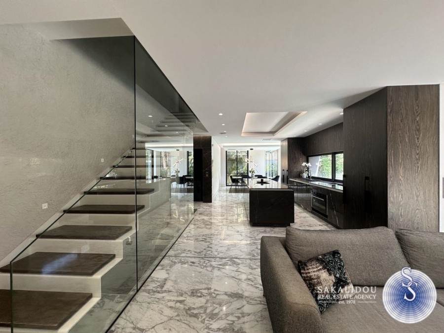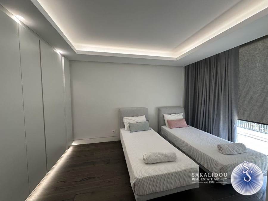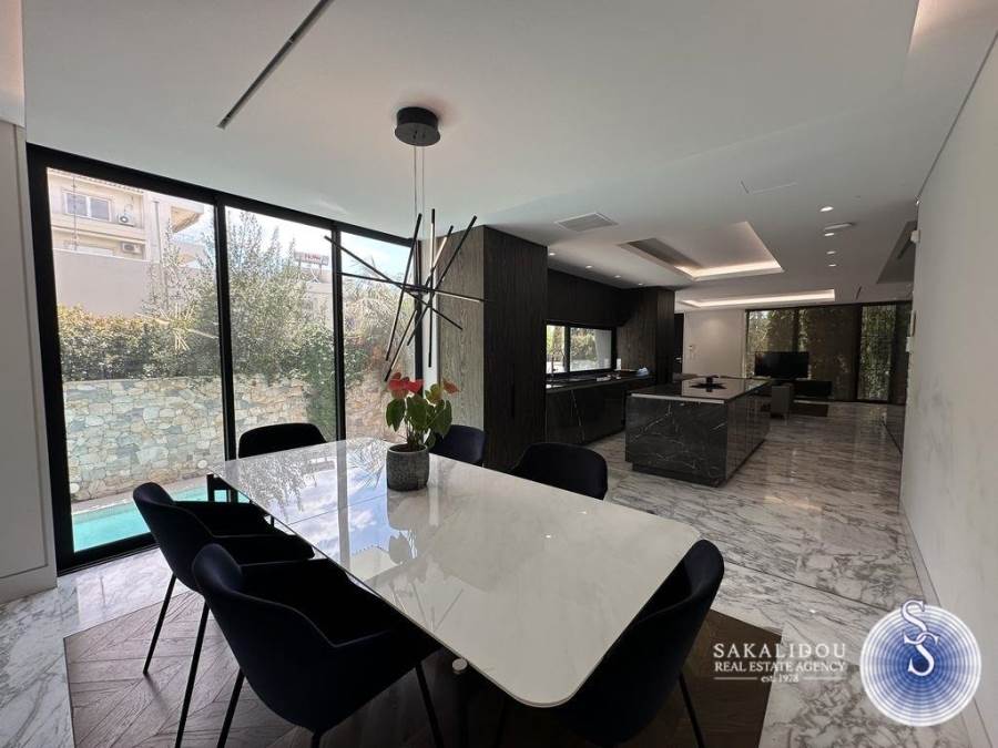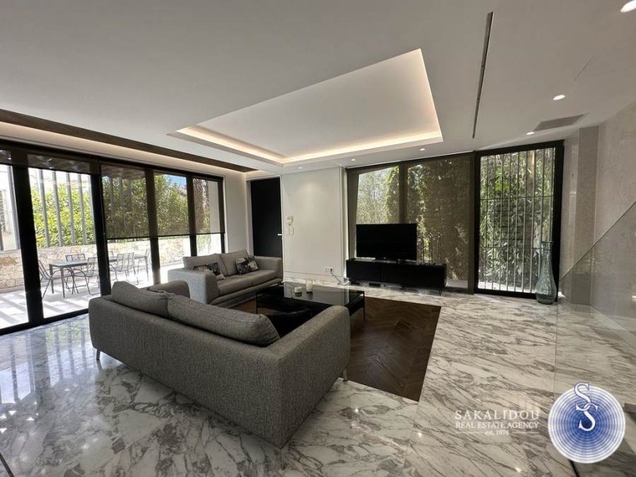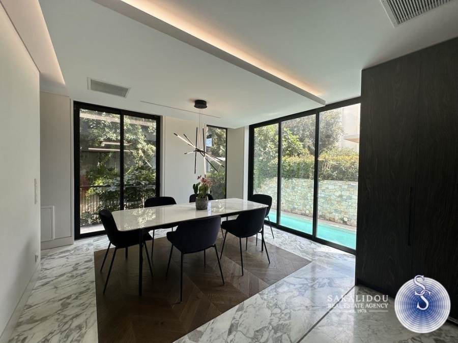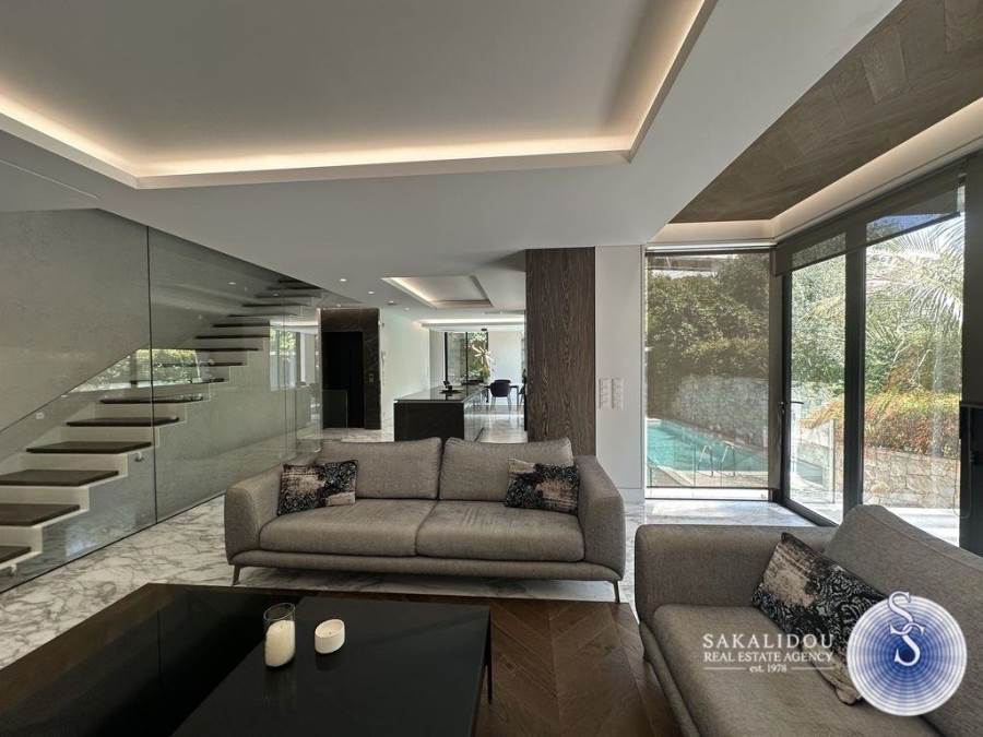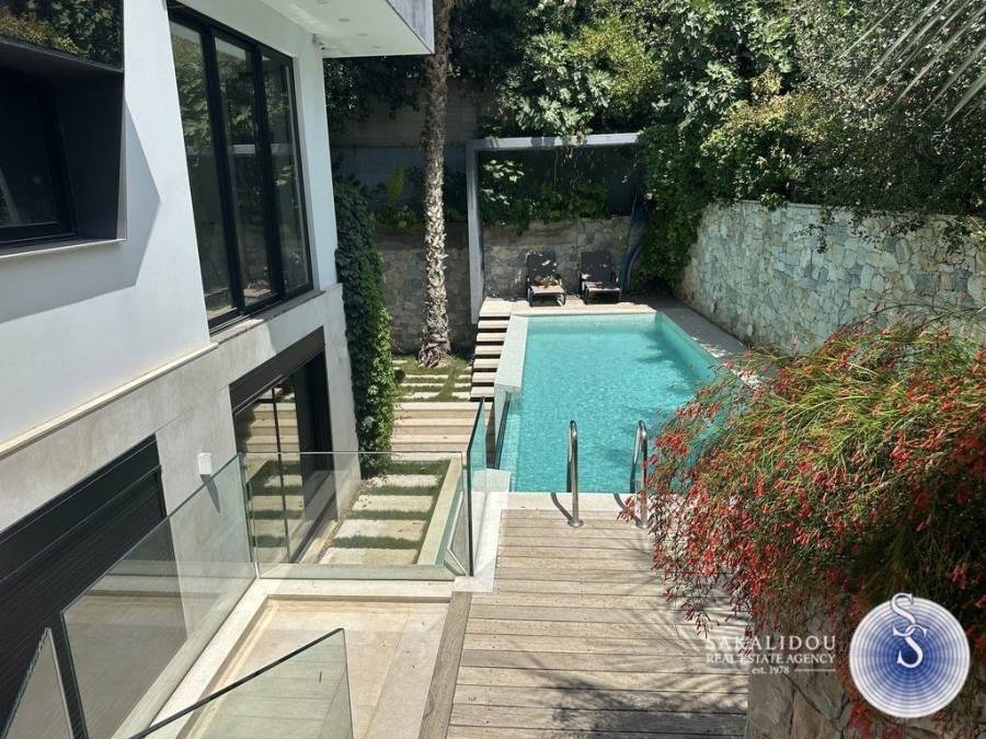 Voula – Luxurious Fully Furnished Villa with Modern Architecture, Garden and PoolSituated in a prime location in Voula, within a quiet and lush green environment, this impressive fully furnished villa is built to the highest standards. Featuring contemporary design and top-quality materials, it perfectly combines elegance, functionality, and ultimate comfort.The ground floor welcomes guests with a spacious and bright reception area that offers unobstructed views of the swimming pool and the beautifully landscaped garden. The modern open-plan kitchen is fully equipped and seamlessly integrated into the living space.The first floor includes three bedrooms, one of which is a master with an en suite bathroom.The second floor has a second living area. The bright semi-basement level offers a staff bedroom, a bathroom, and a generous playroom with direct access to the outdoor area and the pool — ideal for relaxation or entertaining.The property also includes three enclosed parking spaces, an alarm system, and autonomous heating, ensuring maximum security and convenience.Available for rent from September to May.