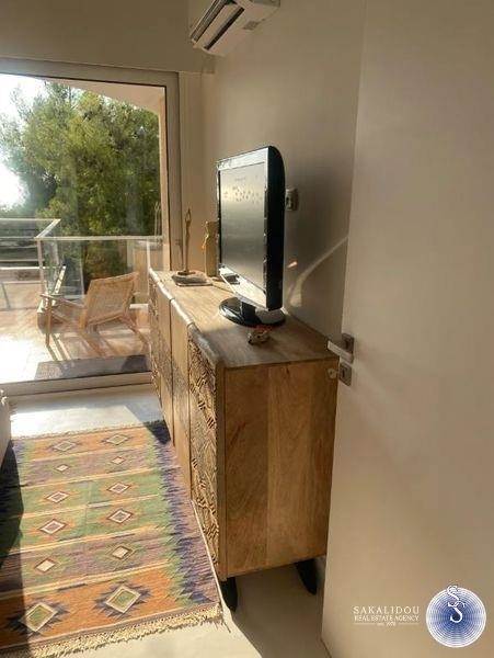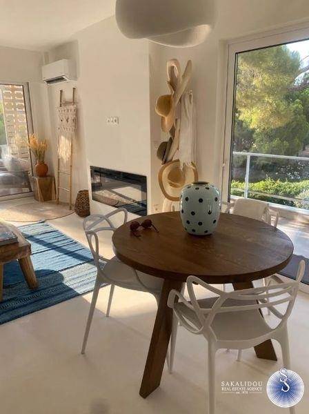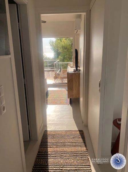 Vouliagmeni, in the excellent location of Kavouri area, fantastic furnished and equipped apartment, 2nd floor, with good view, sea view, luxurious, fully and recently renovated, radical renovation in 2025, has verandas, 2 bedrooms, modern kitchen, built-in electrical appliances and 1 bathroom. Beautiful investment property with modern decoration and all the necessary amenities, with autonomous heating - electricity, air conditioning, solar, security door, alarm, built in 1975, energy certificate B. Without parking and elevator, easy access, investment property due to location, ideal for a holiday home, close to the square, the market and the sea, on the most ideal street of Vouliagmeni, very quiet neighborhood, with a very nice view of the greenery and the pine trees.