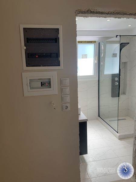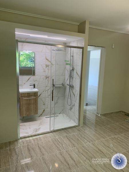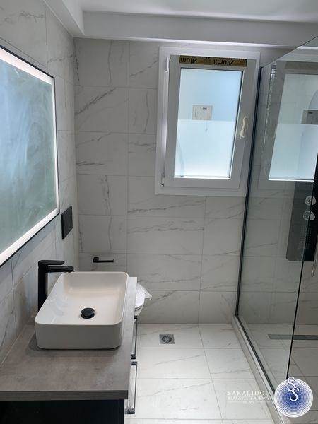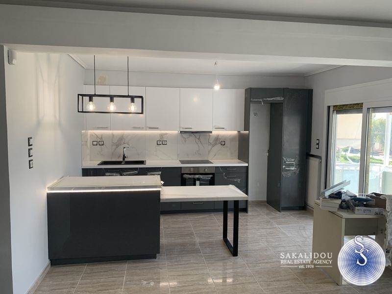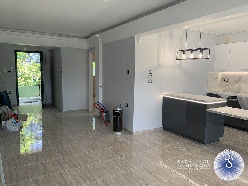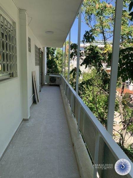 Glyfada, Center, fully and recently renovated 3rd floor apartment of 85 sq.m., with unobstructed sea view from the sitting room area, renovation 2023, frontage and full of light, has a comfortable and very bright sitting room area with great sea view and horizon, open plan kitchen with oven, hob and fridge, 2 bedrooms (1 master), in total 2 bathrooms with shower, terrace, awnings, brand new aluminum frames with electric shutters, double glazing, screens, independent heating, air conditioners in all the rooms, solar, wardrobes, small internal storage inside the apartment, elevator, security door, alarm, video door entry, security cameras, beautiful garden, next to the square, the sea and the means of mass/transportation by walking. Suitable for holiday home or for Professional use.
