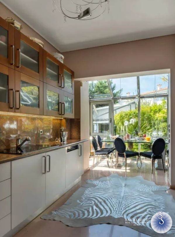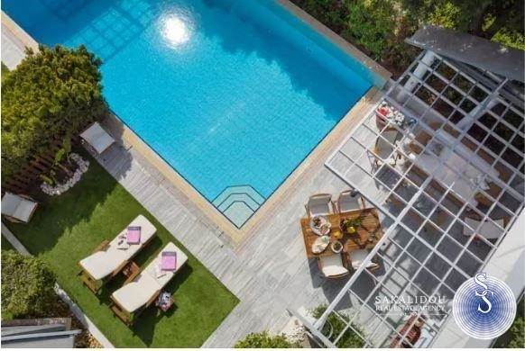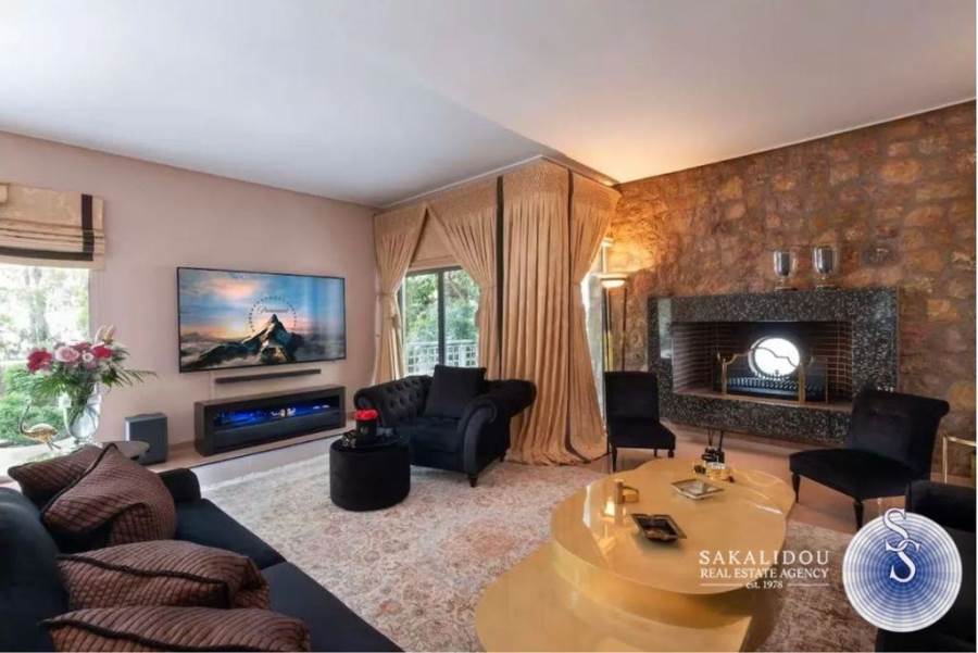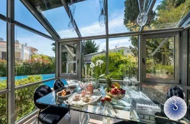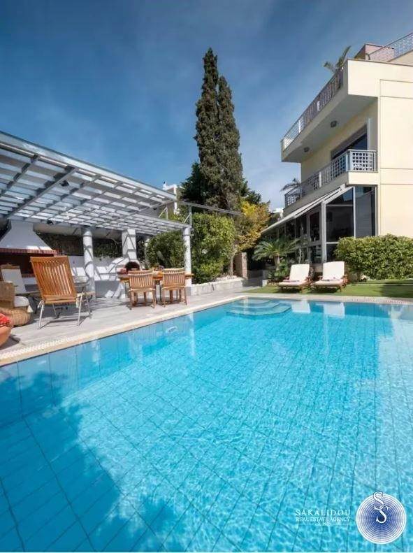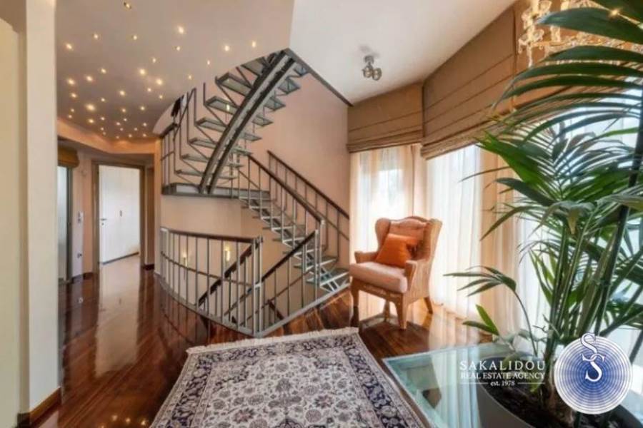 In one of the most beautiful and quiet neighborhoods of Voula, surrounded by greenery and with immediate access to the sea and the local market, a unique maisonette with a total area of 380 sq.m. is offered for sale, combining refined aesthetics, comfort, and functionality.The property is developed over four levels, all connected by an elevator, with the architectural design emphasizing elegance, privacy, and the optimal use of space.On the ground floor, a spacious living room with fireplace and open-plan dining area dominates the space, along with a modern kitchen featuring a daily breakfast area and a guest WC. The first floor hosts two bedrooms and a master bedroom with en-suite bathroom, while the second floor offers a large second master bedroom with an attic, ideal for use as an office, lounge, or relaxation area. The semi-basement includes an independent guesthouse/studio with a private entrance, fully equipped kitchen and bathroom, as well as a closed garage with three parking spaces and storage rooms.The exterior spaces stand out for the landscaped private garden and the elegant infinity pool, creating an atmosphere of relaxation and exclusivity.This residence distinguishes itself through its luxurious construction, contemporary design, independent guesthouse, closed parking for three cars, elevator serving all levels, and of course its privileged location in a green and quiet neighborhood of Voula.