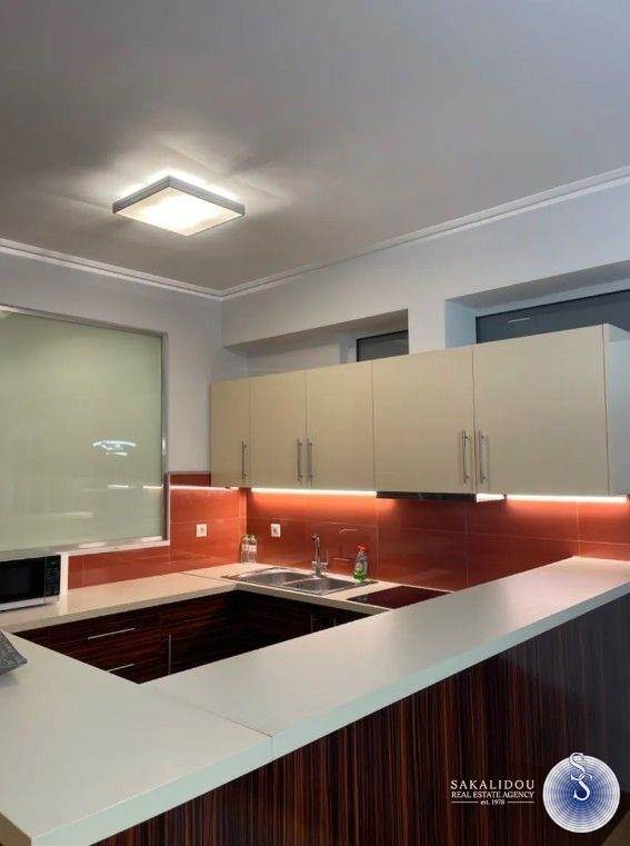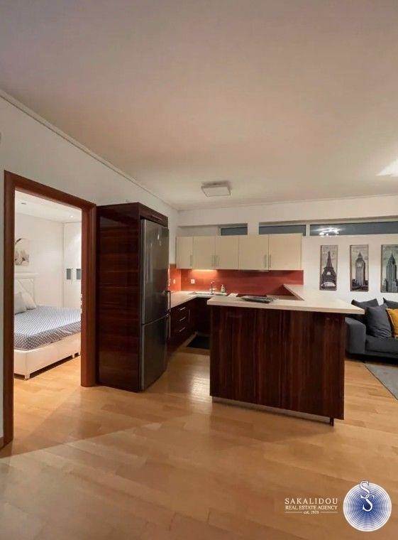 Glyfada Aixoni Area, brand new furnished ground floor apartment 63 sq.m, 1 bedroom, construction `13, bathroom, open plan kitchen fully equipped, wooden floors, under the floor heating, air conditioning, alarm system, swimming pool, storage room, parking space.