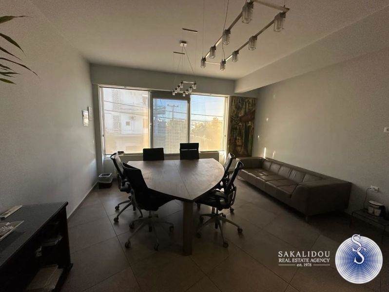 ELLINIKO, in a central location on Vouliagmenis Avenue, modern office for rent, 230 sq.m., 1st floor, in a modern corner building, with a view and openness, very bright, frontage and airy, has comfortable work spaces, 2 WC, elevator, security door, alarm, warehouse, structured wiring, autonomous heating, air conditioning, internal staircase, terrace, penthouse, outdoor parking place in an ideal location next to the Hellinikon metro and public transport.