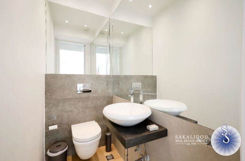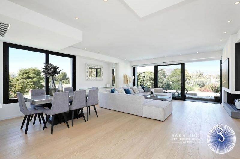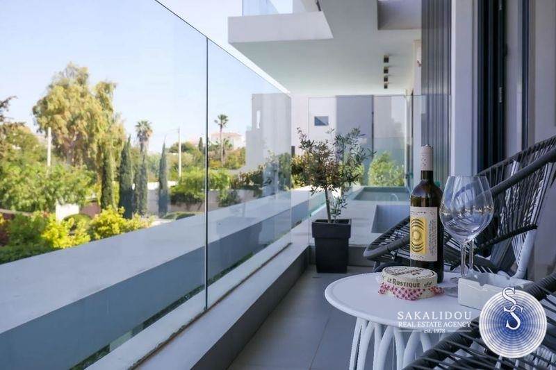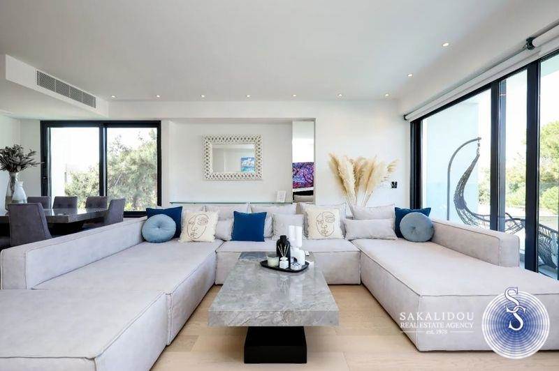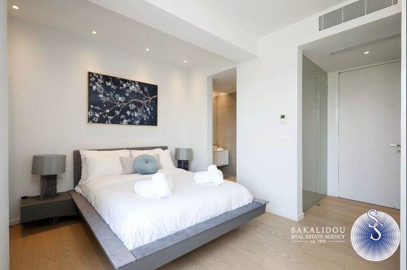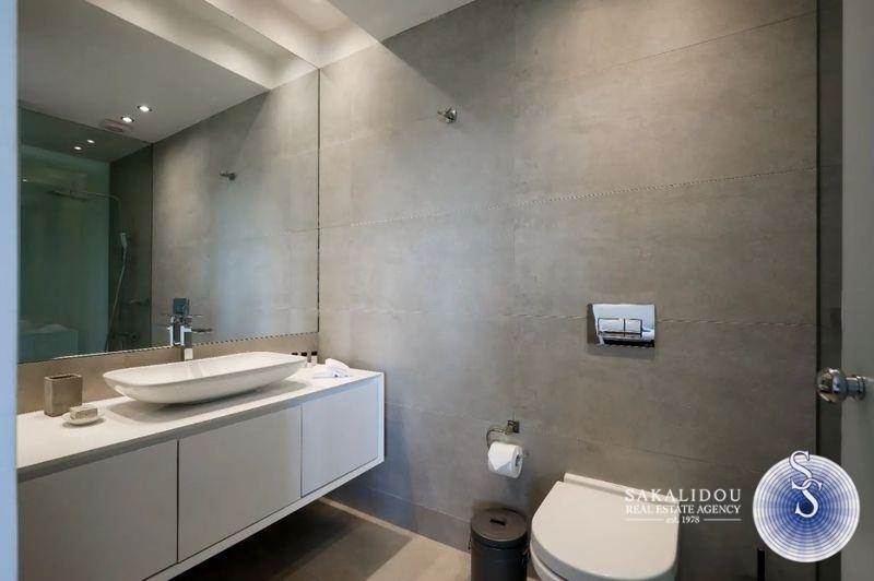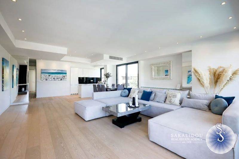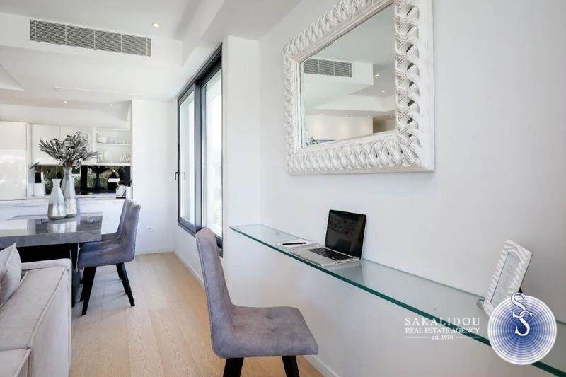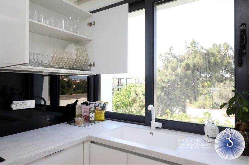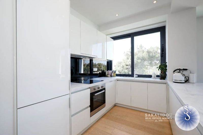 Elliniko Kato, Minimal Design newly built apartment 146sqm, fully furnished and equipped, 1st floor, with landscaped common area and large outdoor communal infinity pool (heated) for relaxation, BBQ/bar for outdoor gatherings under the sun or entertaining guests in a modern building carefully designed to provide comfortable and functional living spaces that meet the needs of the modern lifestyle, built in 2021. It has a bright reception area with a good view of the garden, 2 Master bedrooms, a total of 2 bathrooms, en suite, 1 WC, a kitchen integrated with the reception area equipped with branded built-in electrical appliances, large terrace, wardrobes, independent underfloor heating with heat pump, DAIKIN air conditioning-cooling system, double glazing, screens, electric shutters, hidden lighting, security door, alarm, oak floors, with 2 underground parking spaces, nice environment, in very nice and quiet neighborhood, close to public transport. Apartment with designer furniture and high quality materials plus its ideal location and sleek style, this property combines luxury living with breathtaking natural beauty suitable for a holiday home, available for short term rental.