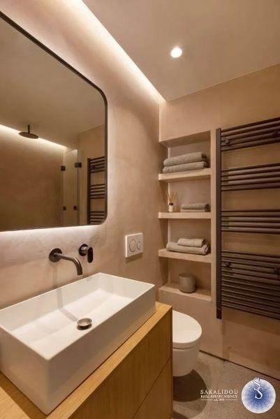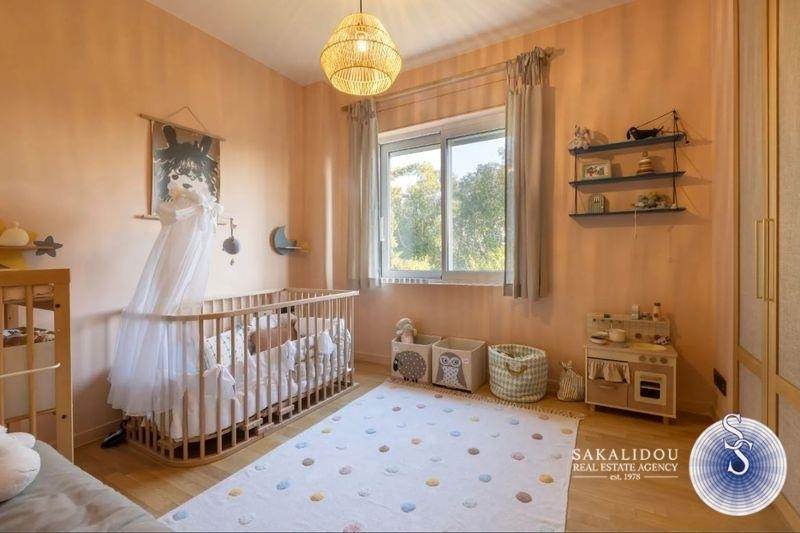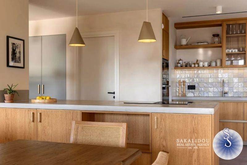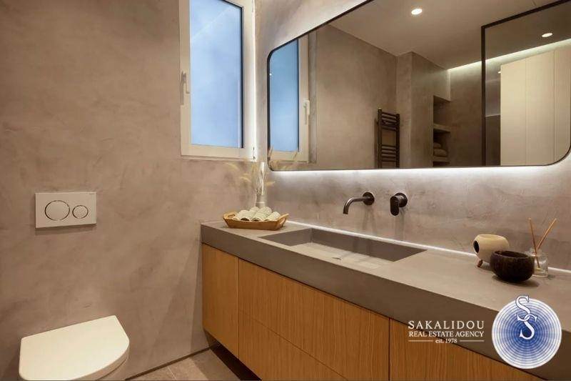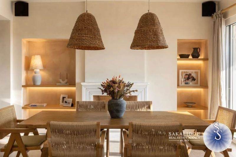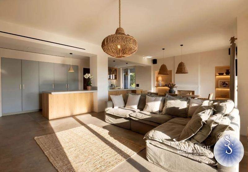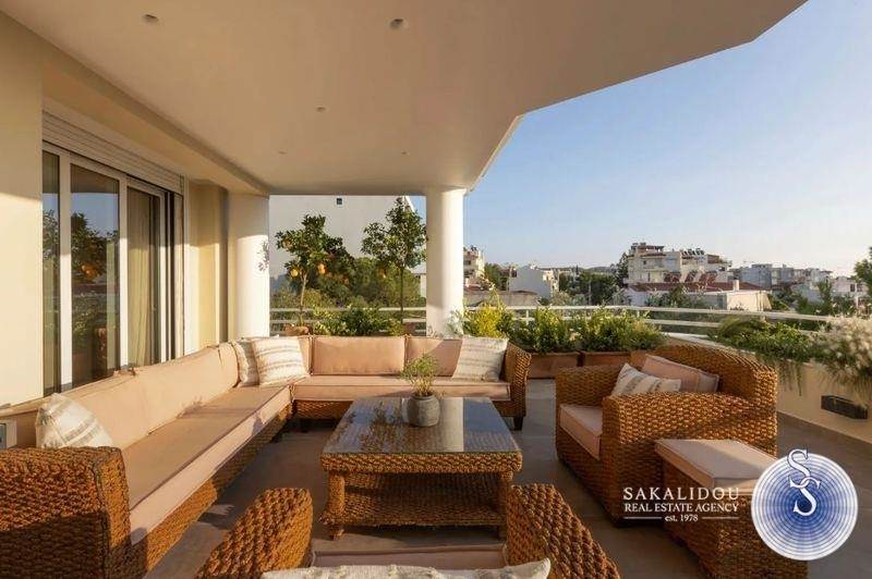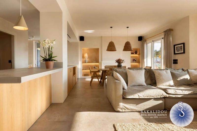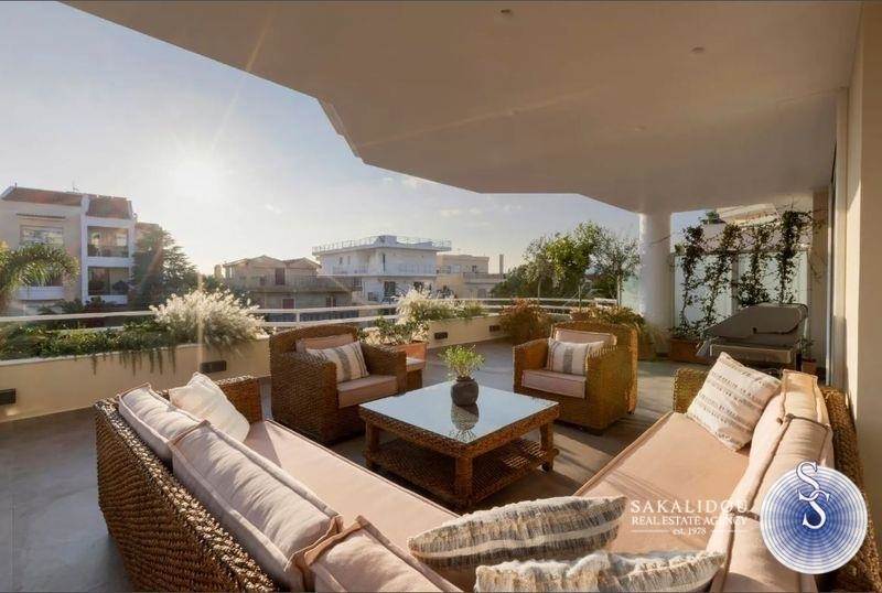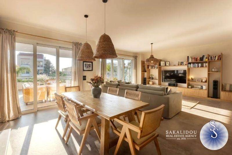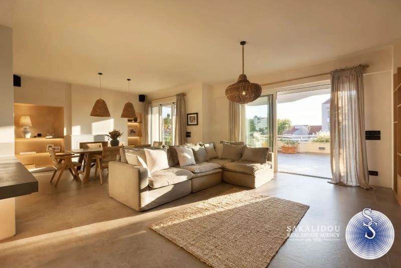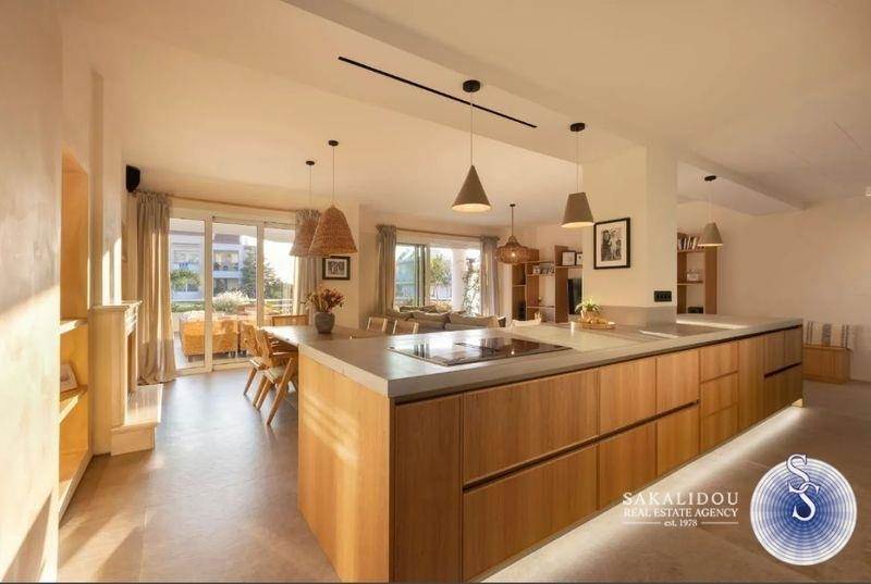 Ano Voula, in the very beautiful area of Dikigorika, is available for sale a Fantastic Aesthetic apartment of 140 sqm, 1st floor, fully and recently renovated, with quality - modern materials and designed with high aesthetics, modernly furnished and equipped with the electrical appliances, has modern decoration and all the necessary amenities, with excellent materials of the latest technology.Located in a very beautiful area and neighborhood, with very easy access, 15 minutes walk from the center of Voula. Luxury property, very bright and pleasant, with an open horizon on three sides with a very good orientation, in a uniquely constructed building by a very famous Architect, in a building that is maintained in excellent condition with only 6 apartments in total.It has a spacious and very bright living room area with dining room where it has access to a very large terrace of 60 sq m. (9x6m) with mature planting, fireplace, very functional and beautiful open plan kitchen area, hidden lighting, fully equipped with all built-in electrical appliances, many cupboards/pantries.It also has 3 bedrooms, 2 bathrooms, the cooling-heating system by a heat pump and has an underfloor system and ceiling fan coils independently in each room, 1 Closed Parking Space and a 6 sq.m. Storage Room, night power, security cameras, elevator, security doors, large garden, beautiful surroundings, in a luxury complex.The house is available fully furnished and equipped or even without furniture. There is a possibility to rent it from the current owners in case of purchase as an investment sale.