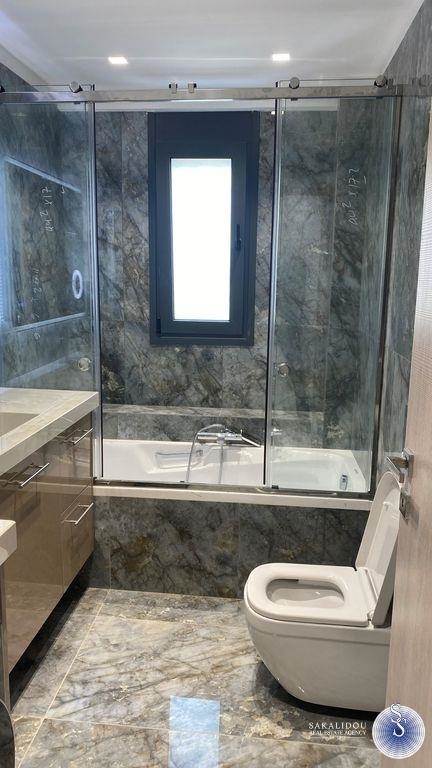 In a beautiful area at Glyfada Golf, in a newly built apartment building with energy class A+, a 2nd floor apartment for rent. The apartment has an area of 100 sq.m. consists of a single living room, equipped kitchen and dining room from which you exit to the front balcony. It also has 3 bedrooms, one of which is a master with an en suite bathroom, while the other two have a shared bathroom. Also in the building there is a communal swimming pool on the ground floor and a terrace with a pergola. The apartment has underground parking, a storage room and it is possible to furnish it.
