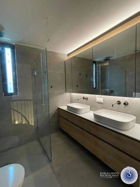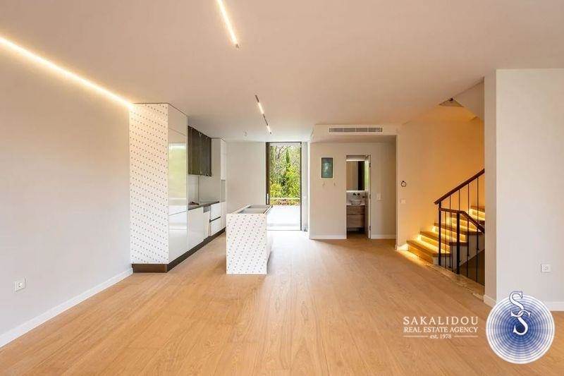 Ano Voula in the beautiful area of Dikigorikon, available for sale a great aesthetic maisonette of 160 sqm, ground floor / 1st floor, fully and recently renovated, with quality - modern materials and designed with high aesthetics and all the necessary amenities, with excellent materials of the latest technology and with access from independent entrances from the 1st & 2nd floors.It has 4 bedrooms, 1 Master, 3 comfortable bedrooms and an additional 1 smaller room for office use or maid`s room, a total of 2 bathrooms, 1 WC, spacious and very bright living room with dining room, fireplace, functional and beautiful kitchen with island, hidden lighting, many cupboards / pantry and modern wardrobes in the bedrooms, autonomous heating, solar, double glazing, screens, security door, alarm, verandas, 1 Parking Space open to the garden and Underground Storage of 8 sq m.Located in a very beautiful area and neighborhood, with very easy access, 15 minutes walk from the center of Voula. A 2-level property, very bright and pleasant in a building that is maintained in excellent condition, large garden, beautiful surroundings.
