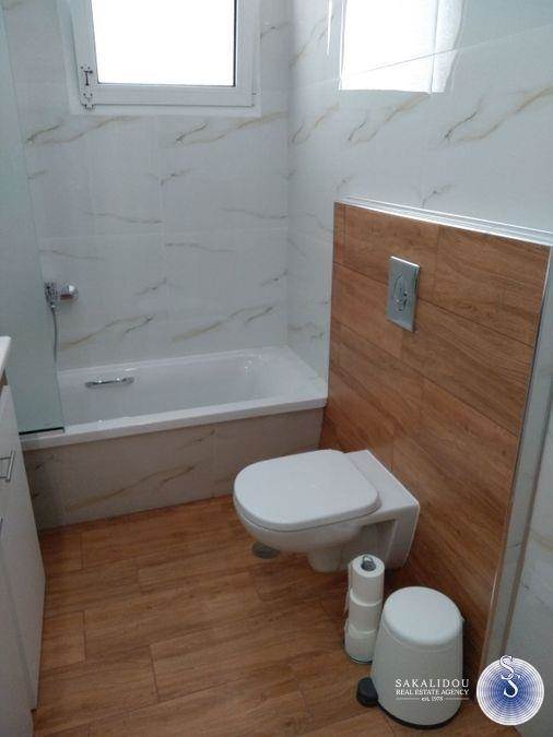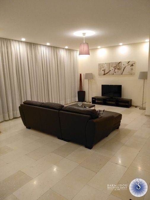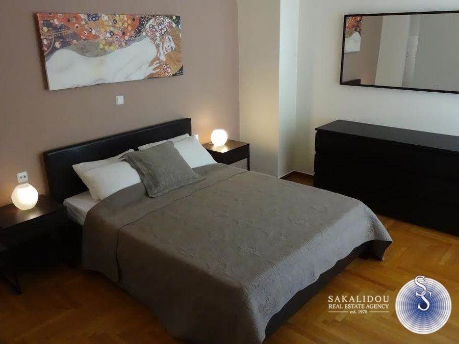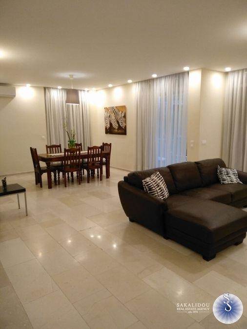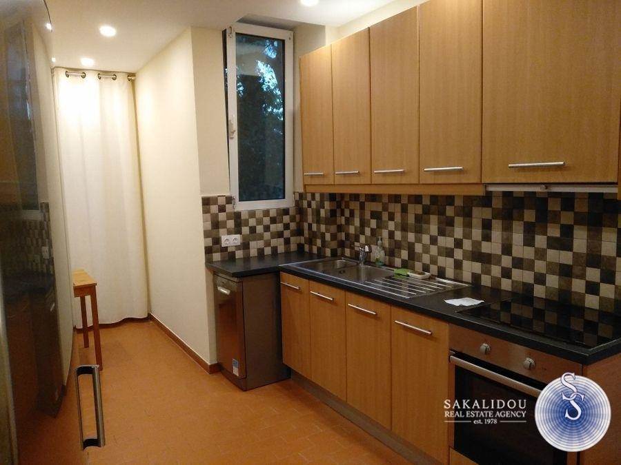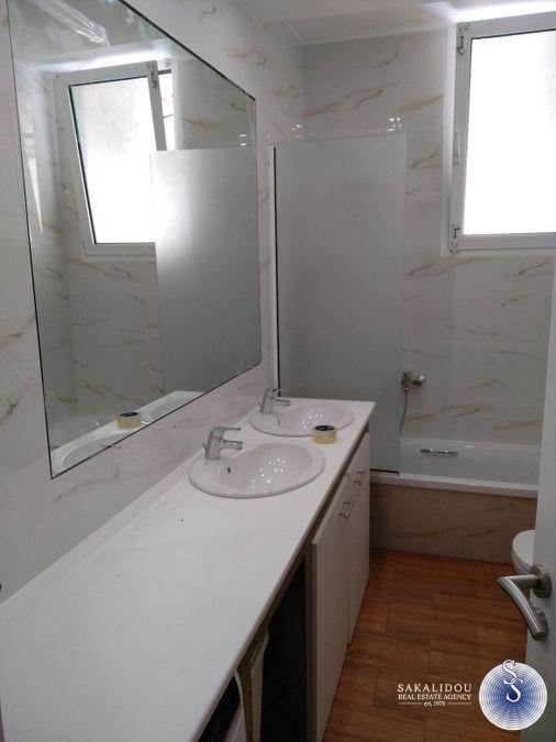 Glyfada, fully renovated 1st floor apartment 142 sq m. in a quiet neighborhood. It has 3 bedrooms, large living room, fully equipped kitchen, 2 bathrooms, open parking space for one car, verandas in each room, air conditioning, solar water heater. Close to Glyfada Square. Utilities are included in the rent.