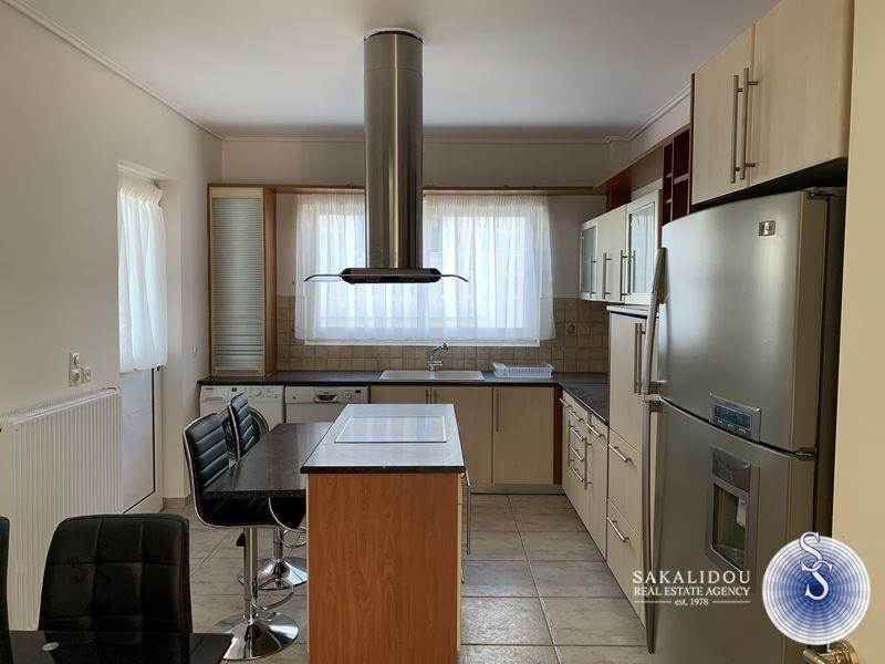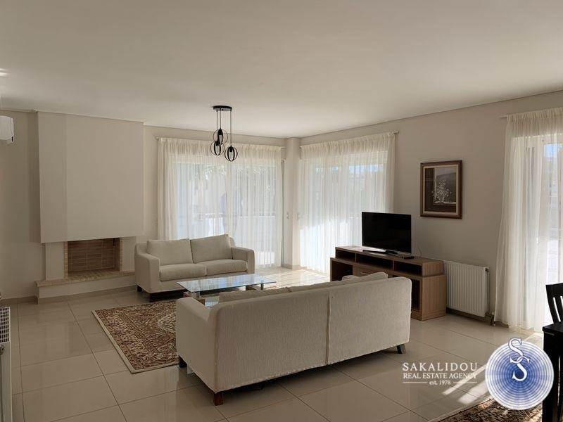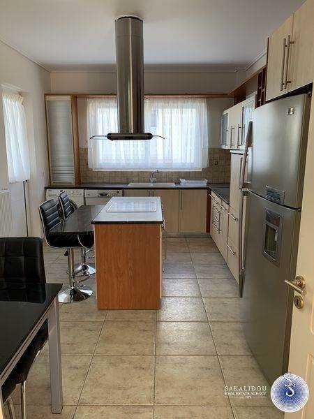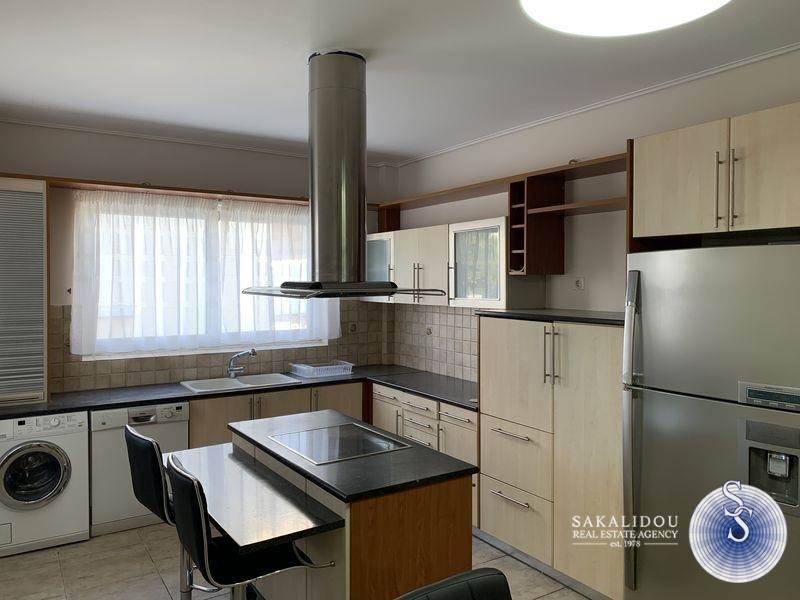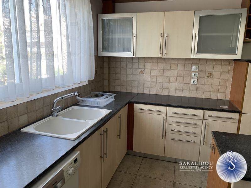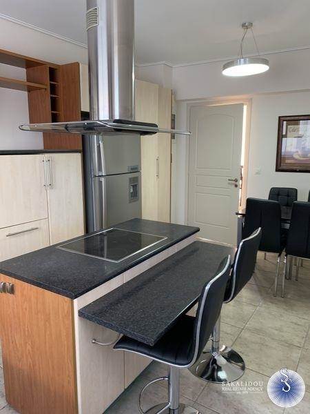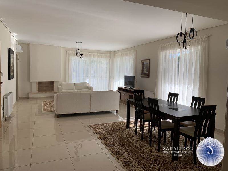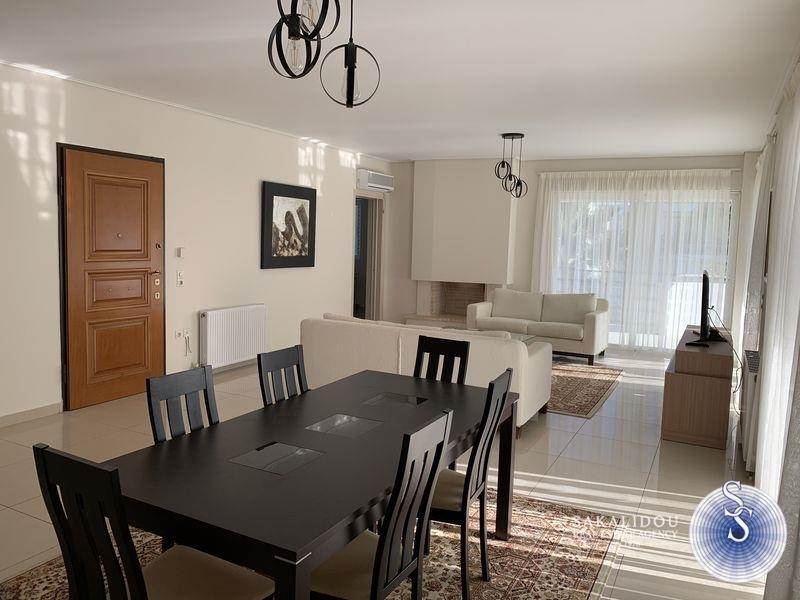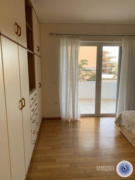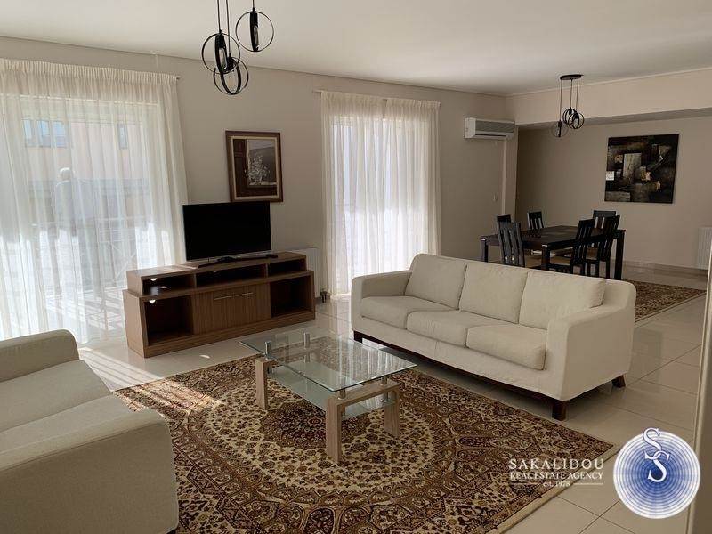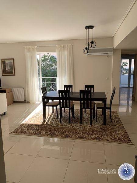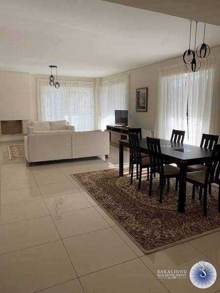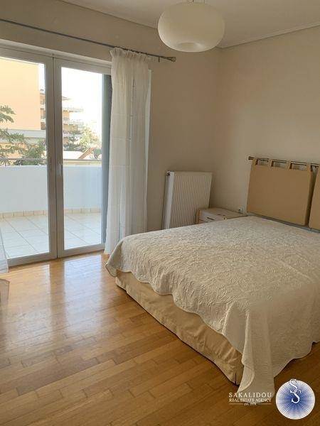 GLYFADA, CENTER, in a great area, fully furnished apartment of 165 sq.m., 2nd floor, has comfortable and full of light living room area with fireplace, very bright kitchen room fully equipped with fitted electrical appliances, 3 bedrooms, 1 Master, 2 bathrooms, 1 wc, big balconies, autonomous heating by gas, air conditioning, alarm system, safety door, double glazing, elevator, parking space, very-very close to the main square, walking distance.