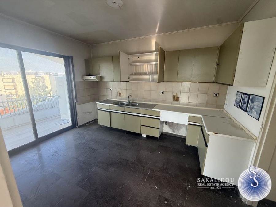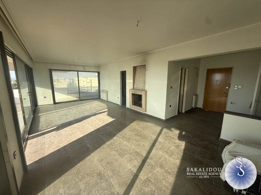 Voula – Kato Voula. For sale: a 152 sq.m. penthouse maisonette on the 3rd floor, arranged on two levels, offering an exceptional sea view from inside the apartment and exclusive use of the rooftop terrace. Built in 1980 and in good condition, the property features spacious, bright, and airy interiors.It consists of 3 bedrooms, 1 kitchen, 1 bathroom, and 1 WC, connected by an internal staircase. Heating is autonomous with oil, and the Energy Performance Certificate is category E. Additional features include aluminum frames with double glazing, marble and wooden floors, large verandas, elevator, storage room, night electricity tariff, and cable TV.This corner, front-facing apartment benefits from excellent natural light and includes 1 parking space. It requires renovation, offering the opportunity to customize it to your personal taste. Ideally located close to the beach and public transportation.