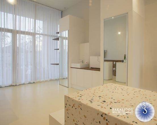 Glyfada Center, Ground floor shop for rent, total area 100 sq.m., consists of Ground floor 60 sq.m., Basement 40 sq.m., with excellent orientation (east) high ceiling, on 2 levels, No Shared, frontage and very bright, internal staircase, 1 toilet, appropriate for take away cafe, close to the central square on foot, suitable for Office, for Dog Grooming - pet grooming shop, Pet Shop, Pet Grooming & Shop, Florist, for Optical shop. Not available for cafe - restaurant.