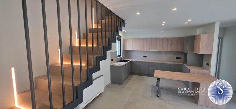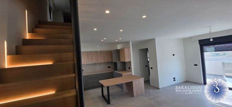 Voula, Kalymniotika, Newly built two-level house (completion 2024) with modern architecture, high quality construction and bright, functional spaces. It consists of an open-plan living room/kitchen, 3 bedrooms & 2 bathrooms. Located in a quiet and easily accessible neighborhood, just 1,200 m. from the sea and 250 m. from the bus stop. Ideal choice for those looking for comfort, quality and a sense of independence.Analytically, on the 2nd floor we found a bright open plan and very modern living room / kitchen room area , Bathroom with bathtub & shower, 1 large Master bedroom with comfortable wardrobes, spacious balcony - 3rd floor 2 bedrooms, Bathroom with shower, Large balconyAlso, it has Autonomous heating / cooling (heat pump), Solar water heater, Thermal facade & energy frames, Double energy glazing / screens & perforated black electric roller shutters, Security door & alarm system, 1 parking space in an open pilothouse area, Luxurious large granite tiles on floors & bathrooms, Many storage spaces + additional storage room of 10 sq m in the attic.