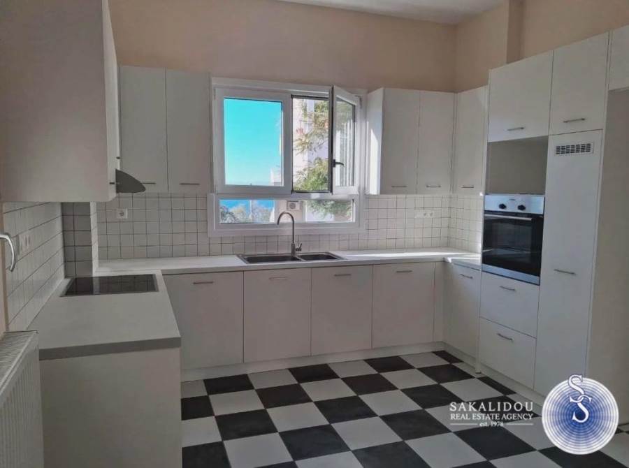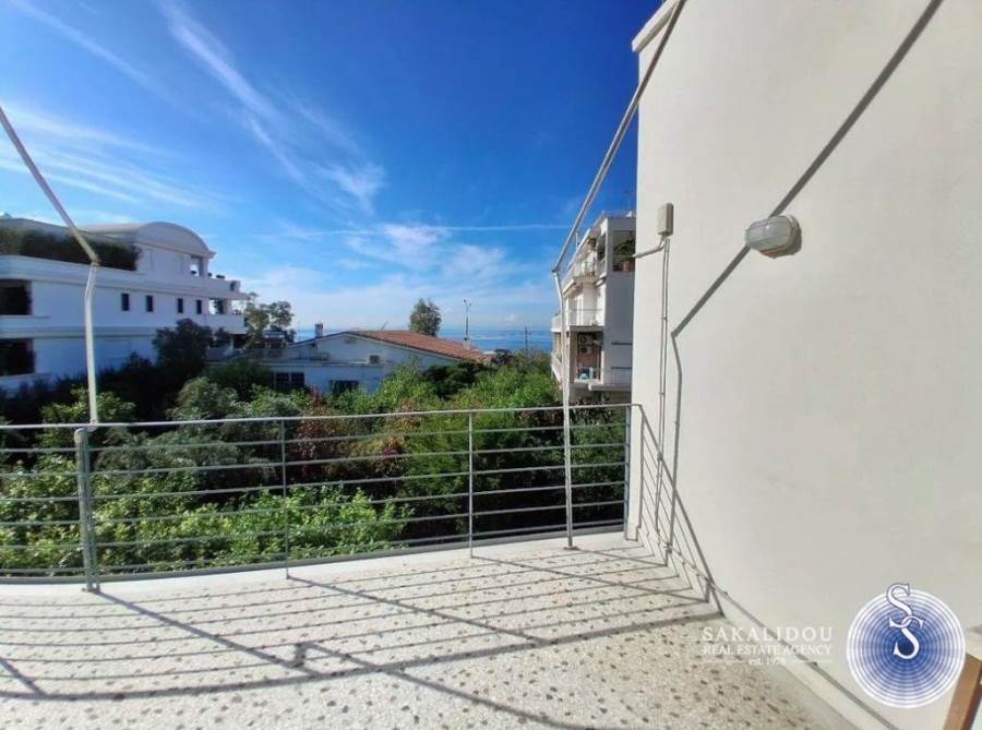 Voula, down town, bright and airy apartment on the 1st floor of a duplex building of 115 sq.m. with unobstructed views of the sea and the mountain, 500 meters from Voula square. It consists of a reception area, kitchen, 2 bedrooms, 1 bathroom and 1 wc. It has autonomy heating with oil, alarm system, solar system, wooden floors, verandas, parking space and storage room.