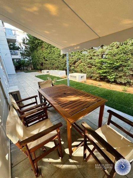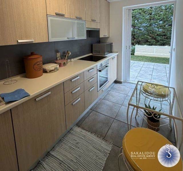 Voula Kato, fully furnished and equipped newly built apartment for rent, 75 sq.m., ground floor, recently renovated, very pleasant, comfortable and bright apartment, built in 2003, with use of part of the garden and parking space in a piloti.It has two bedrooms, living room area, 1 bathroom, independent separate kitchen, with all electrical appliances, dishes, glasses, etc., with autonomous heating - oil, security door, aluminum frames with screens, three air conditions.Pets allowed.