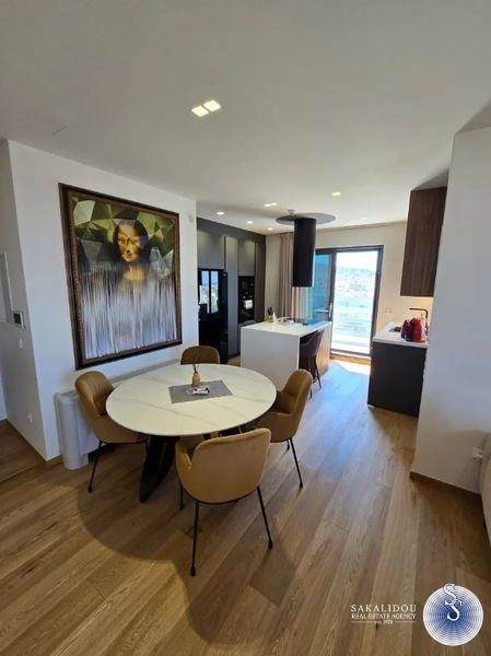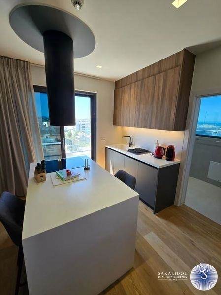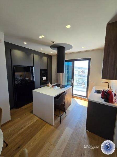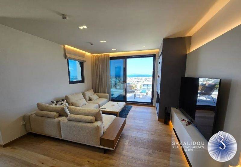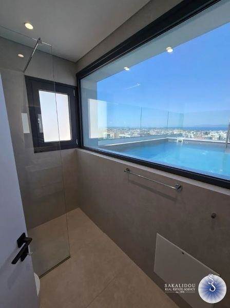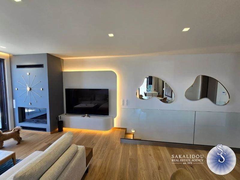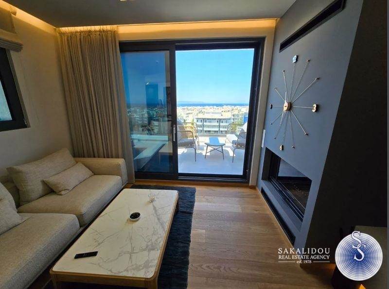 Penthouse furnished and equipped maisonette on the 5th-6th floor of 135 sq.m. with private pool on the terrace and unlimited view, minimal architecture, year of construction 2024, walking distance of the center of Glyfada and close to a neighboring market. In detail, it has 3 bedrooms, one master, a total of 3 bathrooms, living room with fireplace - energy-efficient, modern open kitchen with branded built-in electrical appliances, laundry room, storage room, verandas, internal staircase, autonomous heating system (Fan coil), air conditioning, solar, energy-efficient aluminum frames, alarm and 2 Underground parking spaces.