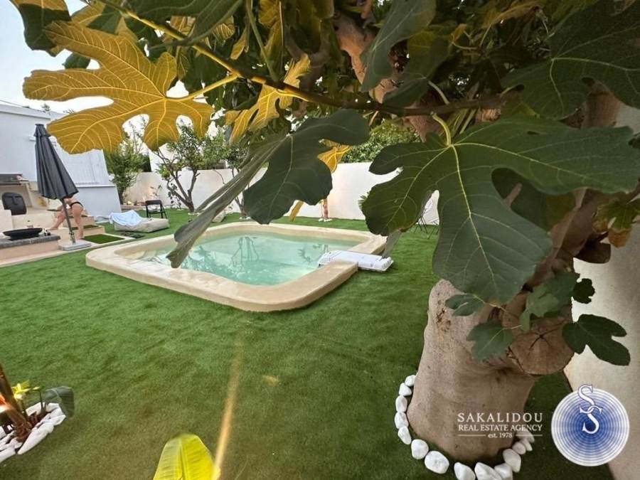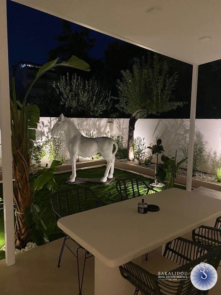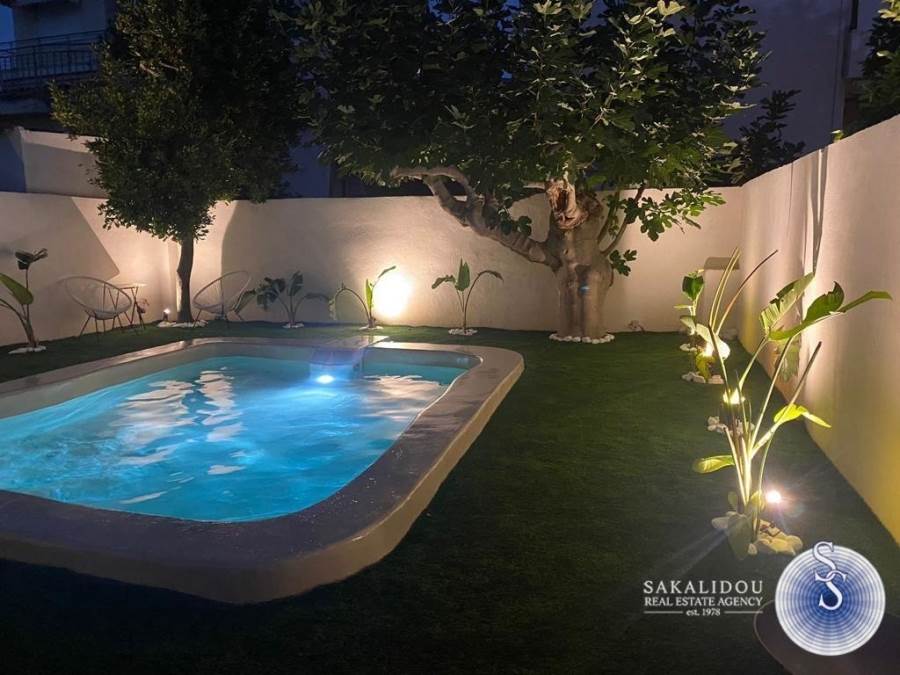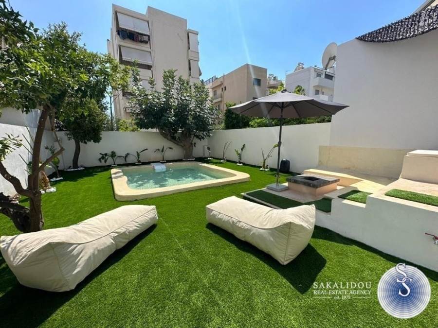 Glyfada Center, fully furnished detached house of 120 sq.m. ground floor, with swimming pool and beautiful garden of 450 sq.m., recently renovated in 2023, very close to the main square on foot. It has an outdoor living room with fireplace in front of the pool, verandas, Barbecue, fully equipped kitchen, 2 bedrooms and 2 bathrooms, has solar water heater, oil heating, screens, awnings, private terrace of 120 sq.m., without common expenses, in a very nice neighborhood.